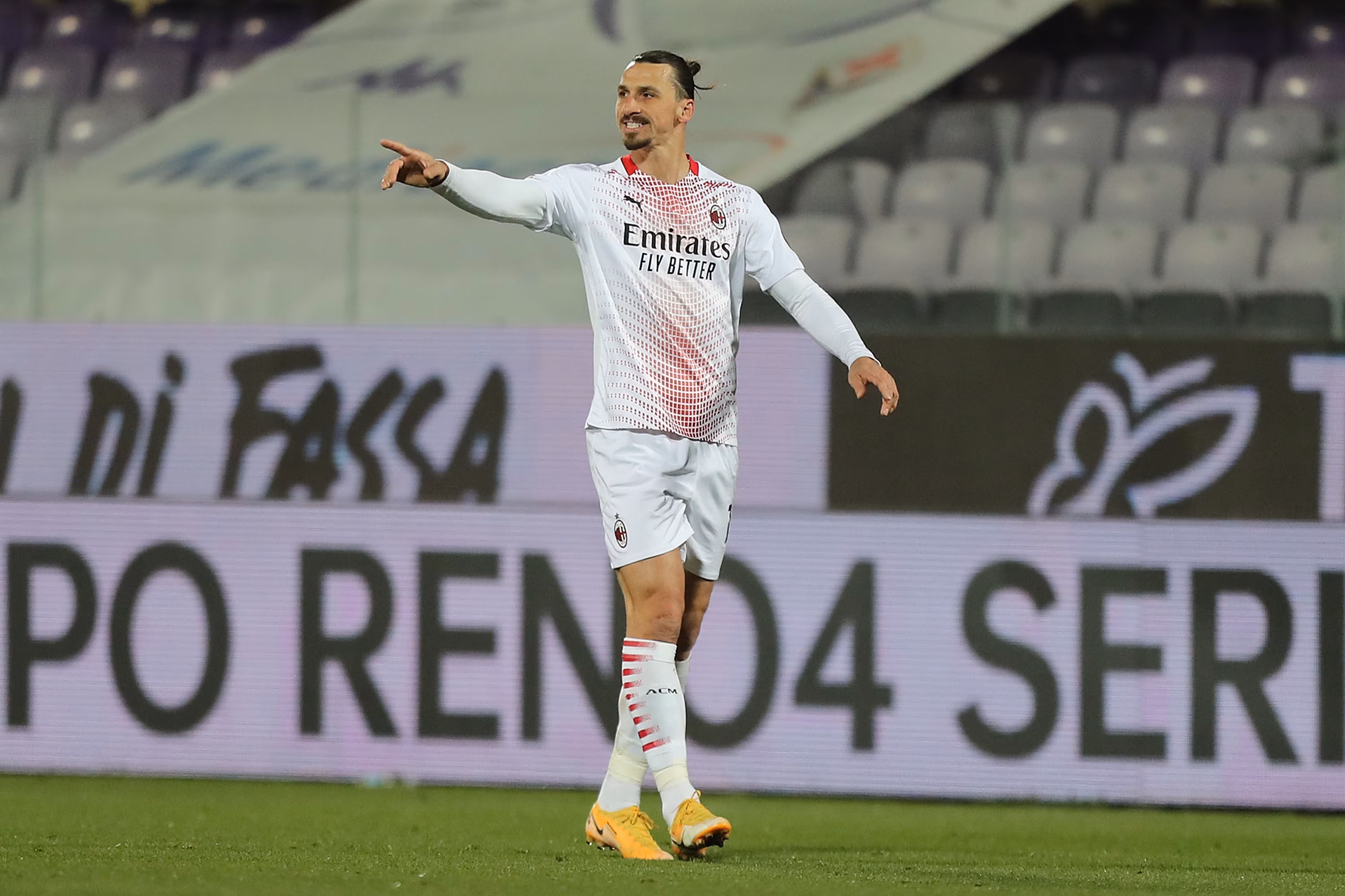 Zlatan Ibrahimovic, centravanti del Milan, durante la partita contro la Fiorentina al Franchi