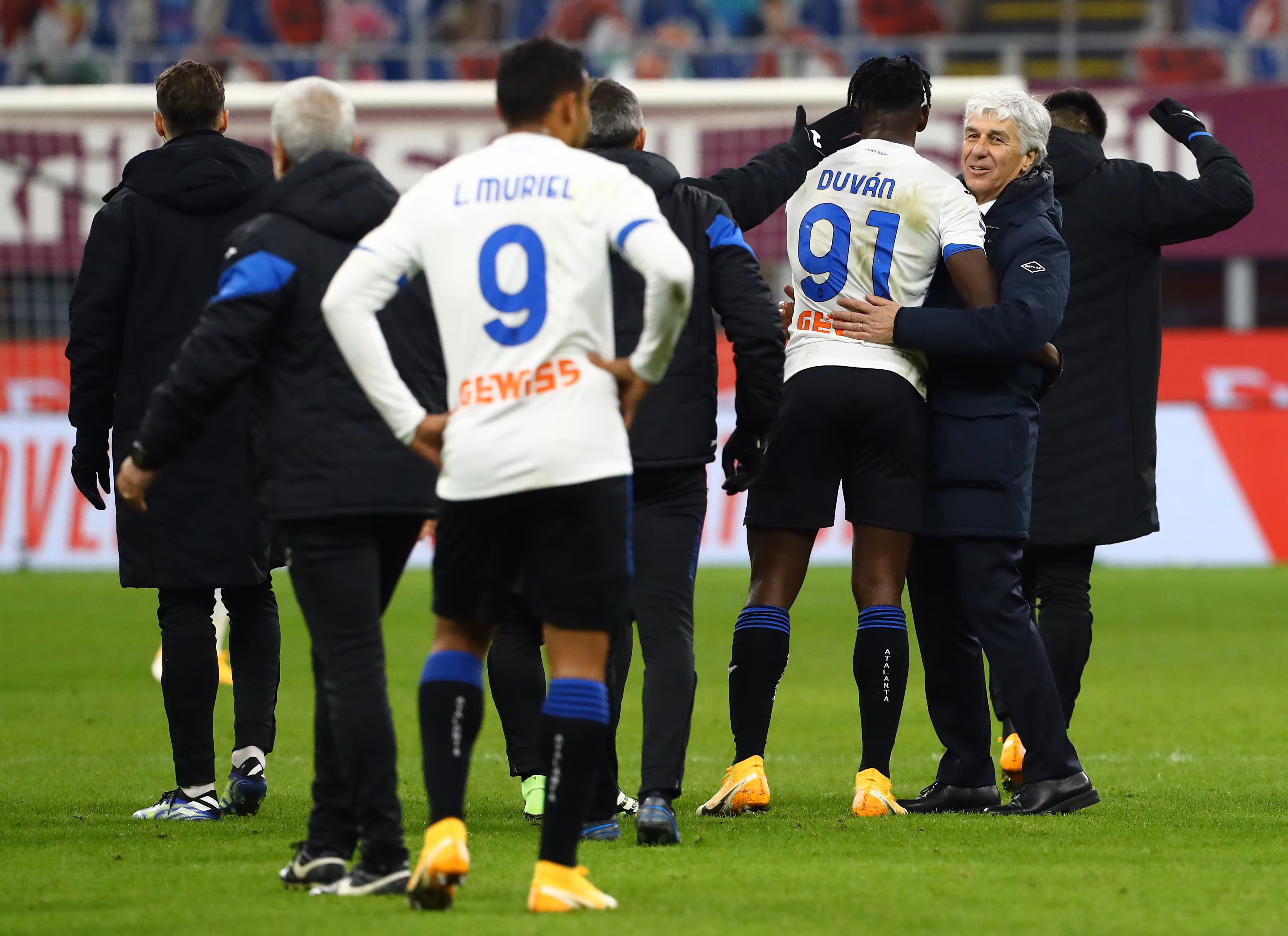 L'Atalanta festeggia dopo la vittoria a San Siro contro il Milan