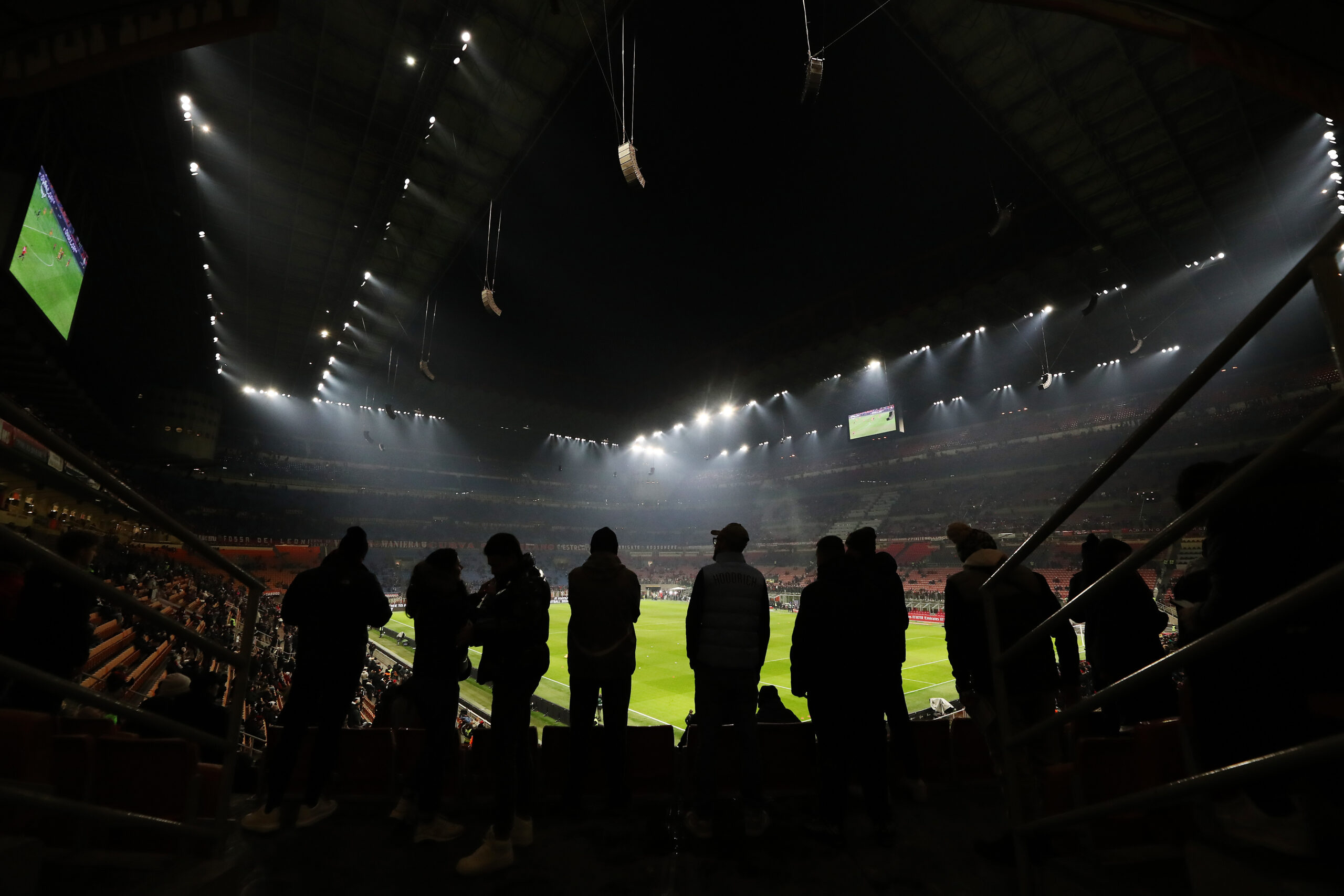 MILAN, ITALY - JANUARY 14: General view inside the stadium prior to the Serie A TIM match between AC Milan and AS Roma - Serie A TIM at Stadio Giuseppe Meazza on January 14, 2024 in Milan, Italy. (Photo by Marco Luzzani/Getty Images)