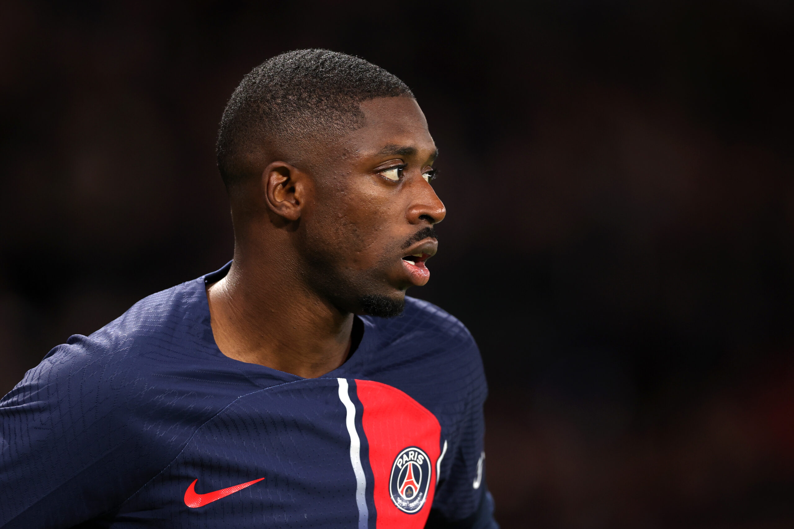 PARIS, FRANCE - NOVEMBER 03: Ousmane Dembele of PSG during the Ligue 1 Uber Eats match between Paris Saint-Germain and Montpellier HSC at Parc des Princes on November 03, 2023 in Paris, France. (Photo by Alex Pantling/Getty Images)