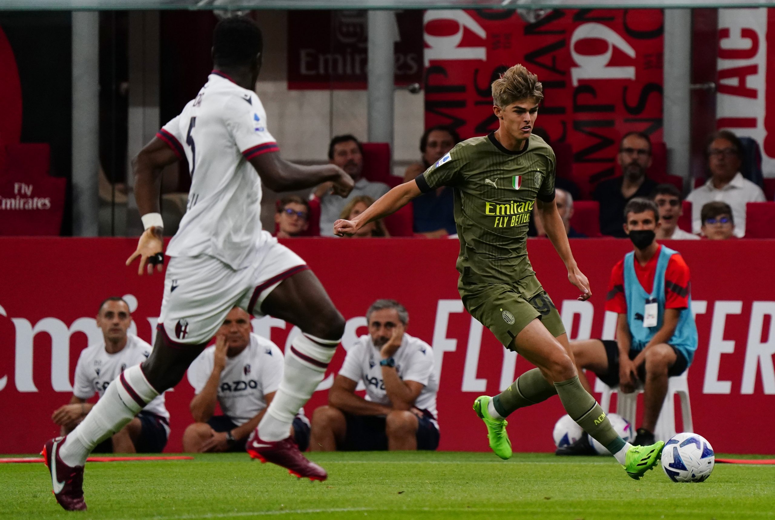 MILAN, ITALY - AUGUST 27: Charles De Ketelaere of AC Milan in action during the Serie A match between AC Milan and Bologna FC at Stadio Giuseppe Meazza on August 27, 2022 in Milan, Italy. (Photo by Pier Marco Tacca/AC Milan via Getty Images)