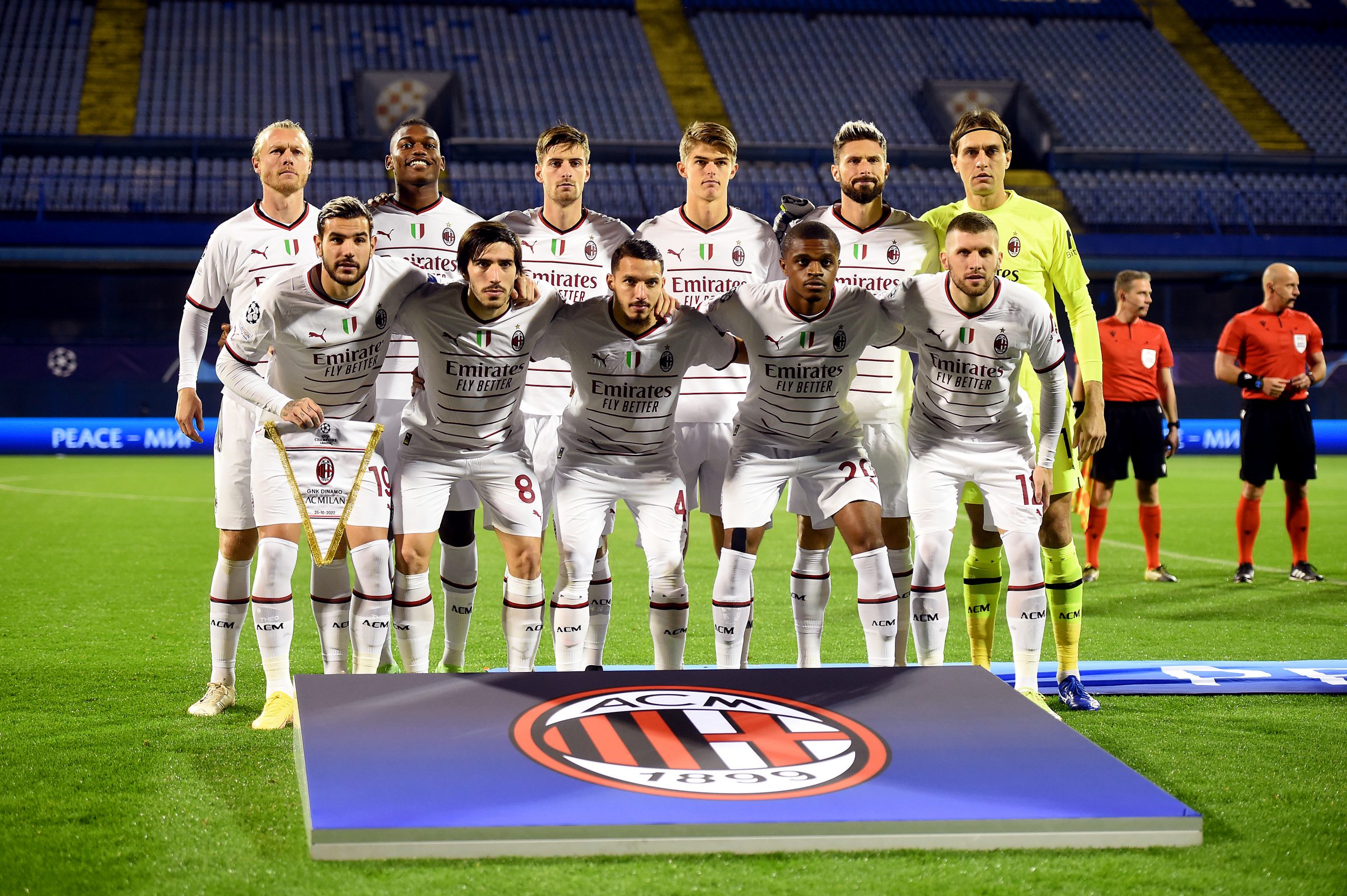 ZAGREB, CROATIA - OCTOBER 25: Players of AC Milan pose for a team photograph prior to kick off of the UEFA Champions League group E match between Dinamo Zagreb and AC Milan at Stadion Maksimir on October 25, 2022 in Zagreb, Croatia. (Photo by Jurij Kodrun/Getty Images)