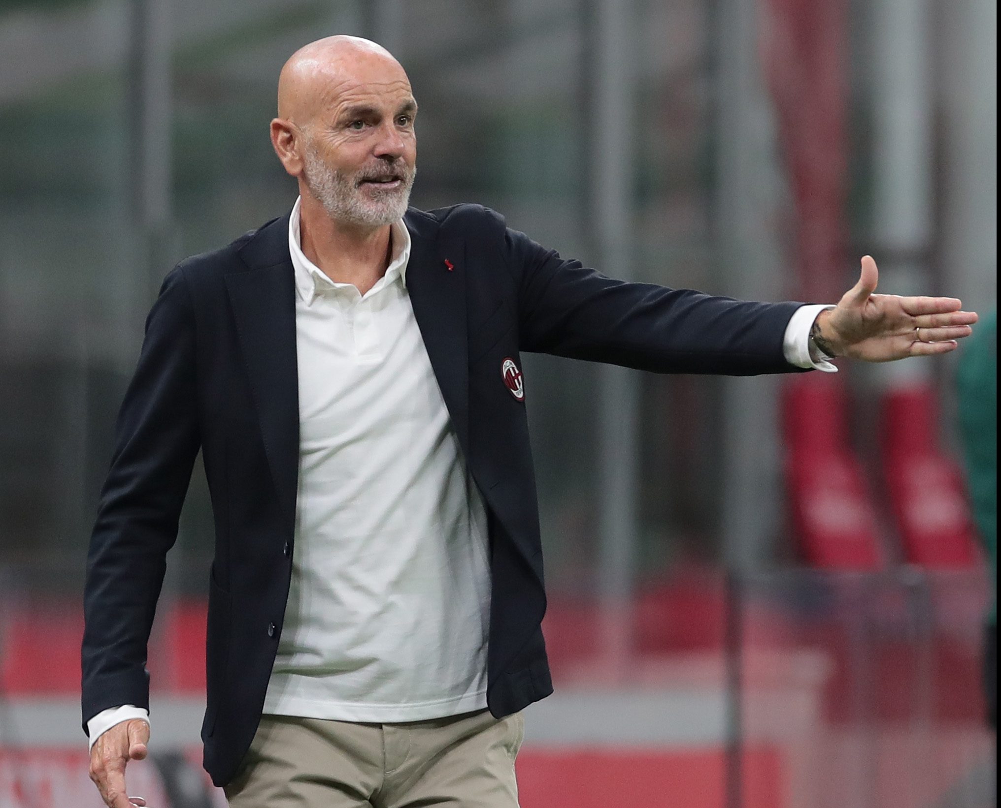 MILAN, ITALY - SEPTEMBER 24: AC Milan coach Stefano Pioli issues instructions to his players during the UEFA Europa League third qualifying round match between AC Milan and Bodo Glimt at Stadio Giuseppe Meazza on September 24, 2020 in Milan, Italy. (Photo by Emilio Andreoli/Getty Images)