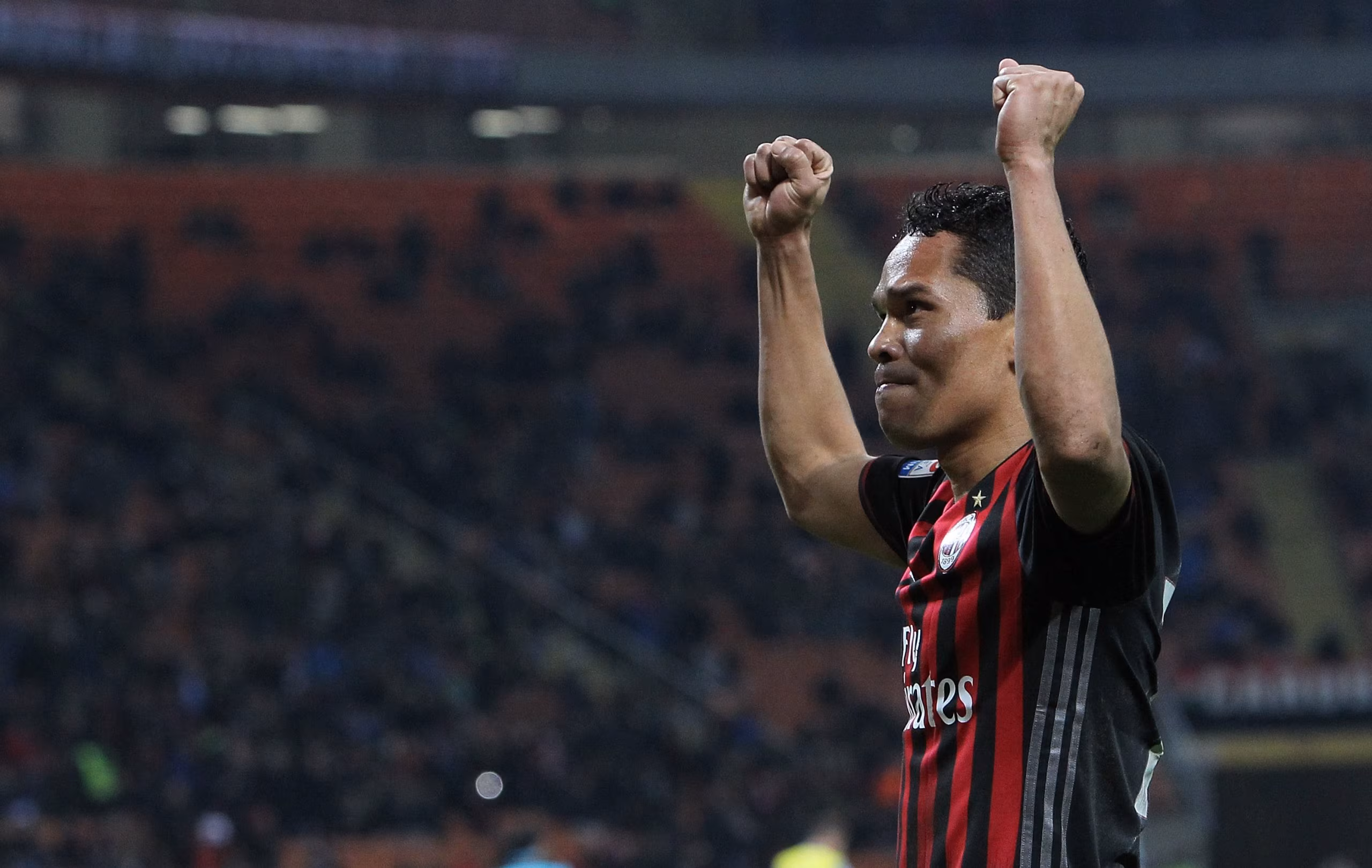 Carlos Bacca festeggia una rete con la maglia del Milan
