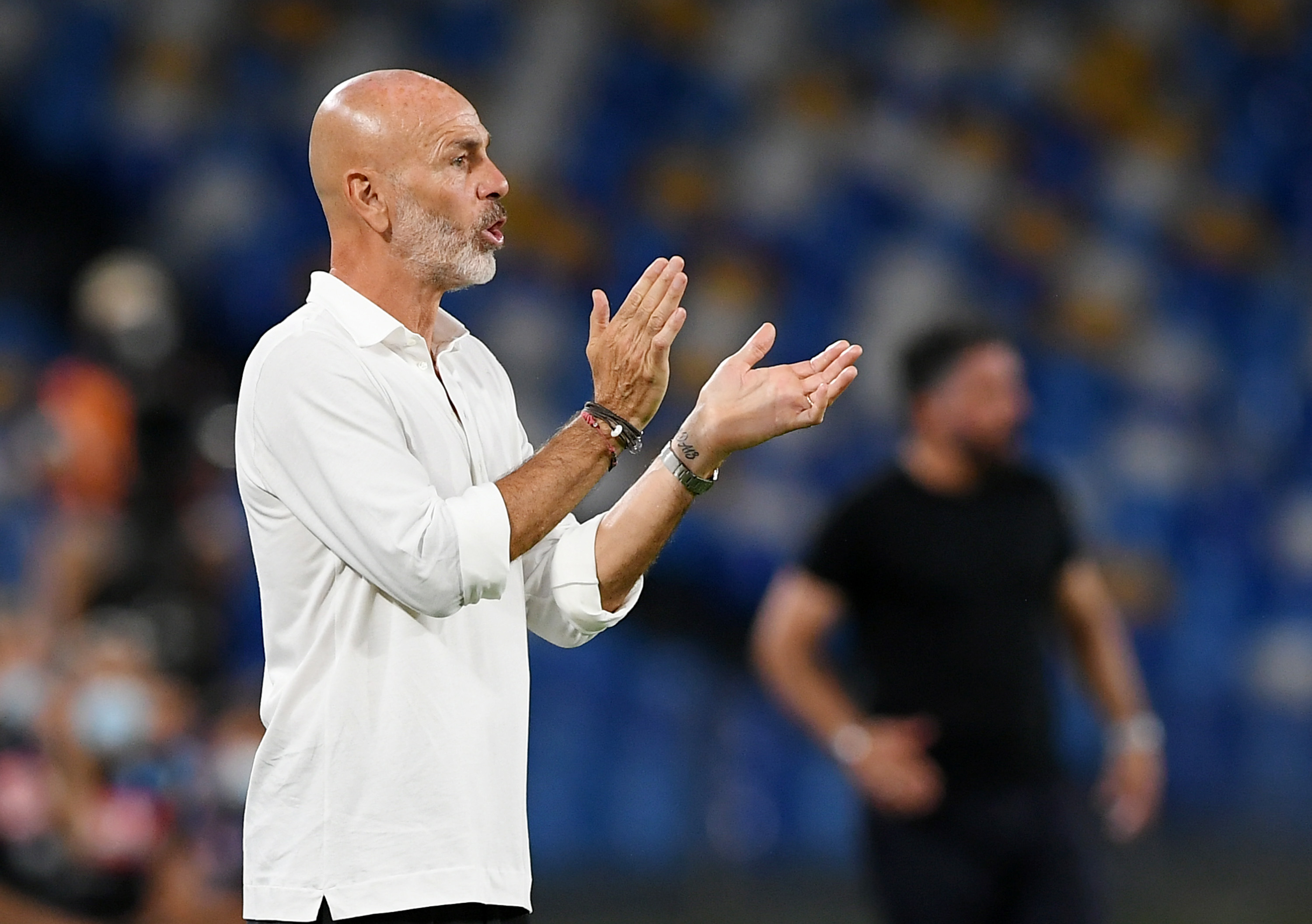 NAPLES, ITALY - JULY 12: Stefano Pioli of AC Milan during the Serie A match between SSC Napoli and AC Milan at Stadio San Paolo on July 12, 2020 in Naples, Italy. (Photo by Francesco Pecoraro/Getty Images)