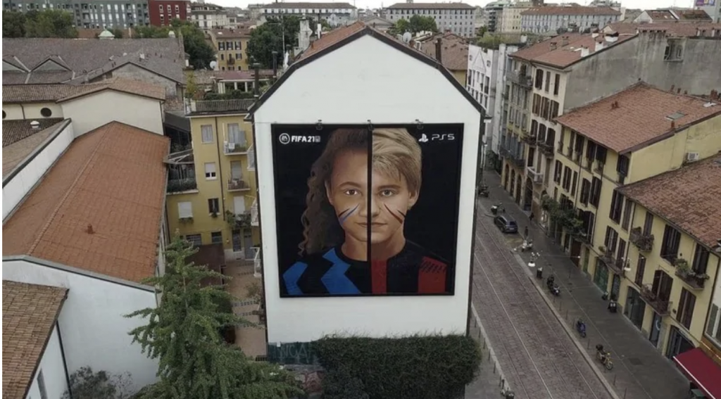MILANO – EA Sports, in occasione della prossima uscita di FIFA 21, prevista per il 9 ottobre, ha promosso un’originale progetto per rendere omaggio, in collaborazione con Sony Interactive Entertainment Italia, all’Inter e al Milan. I due club meneghini, impegnati nel derby del prossimo 17 ottobre, sono rappresentati su un gigantesco murales in Corso di Porta Ticinese a Milano, opera del famoso street artist Jorit Agoch.