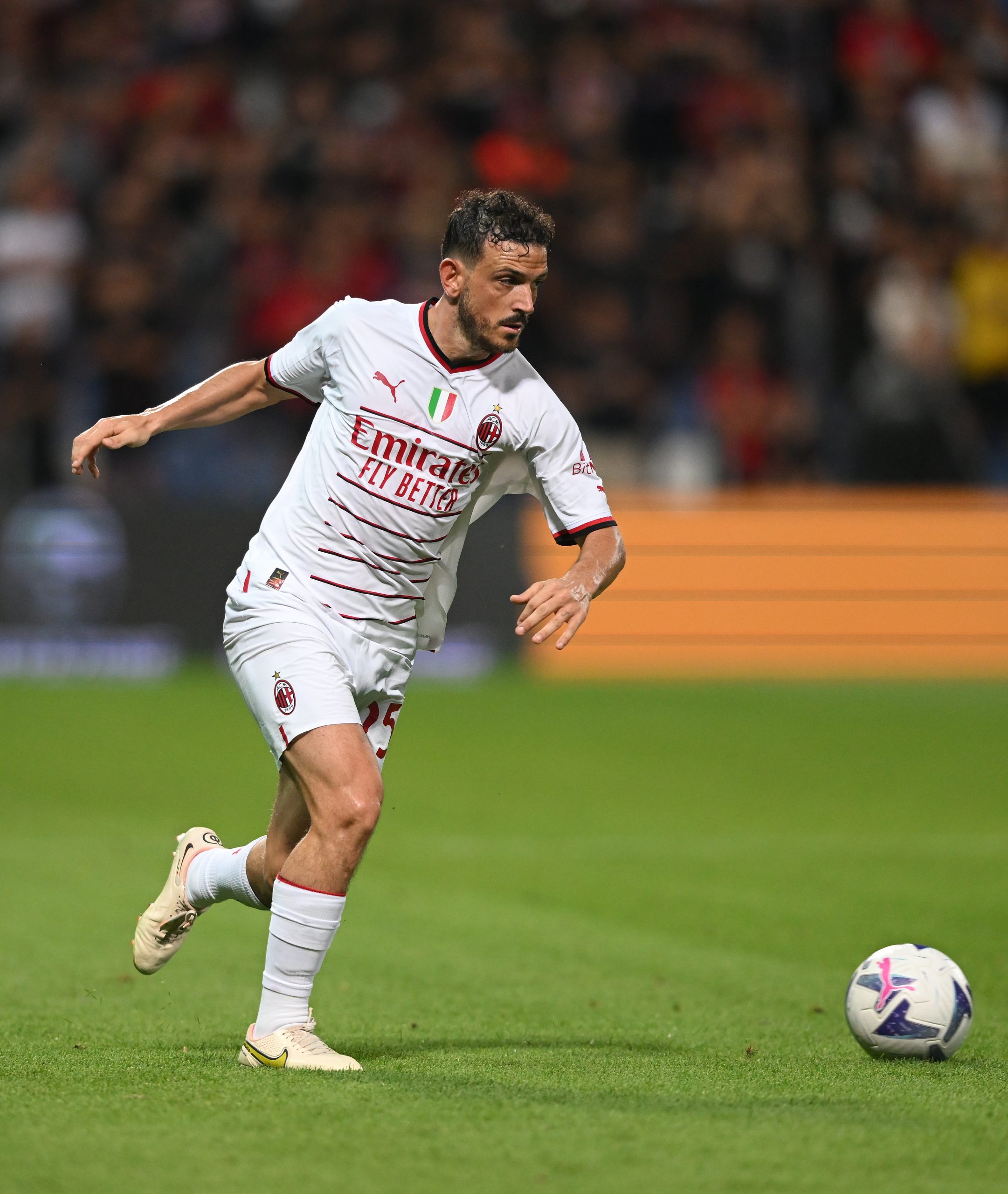 REGGIO NELL'EMILIA, ITALY - AUGUST 30: Alessandro Florenz of AC Milan in action during the Serie A match between US Sassuolo and AC Milan at Mapei Stadium - Citta' del Tricolore on August 30, 2022 in Reggio nell'Emilia, Italy. (Photo by Claudio Villa/AC Milan via Getty Images)