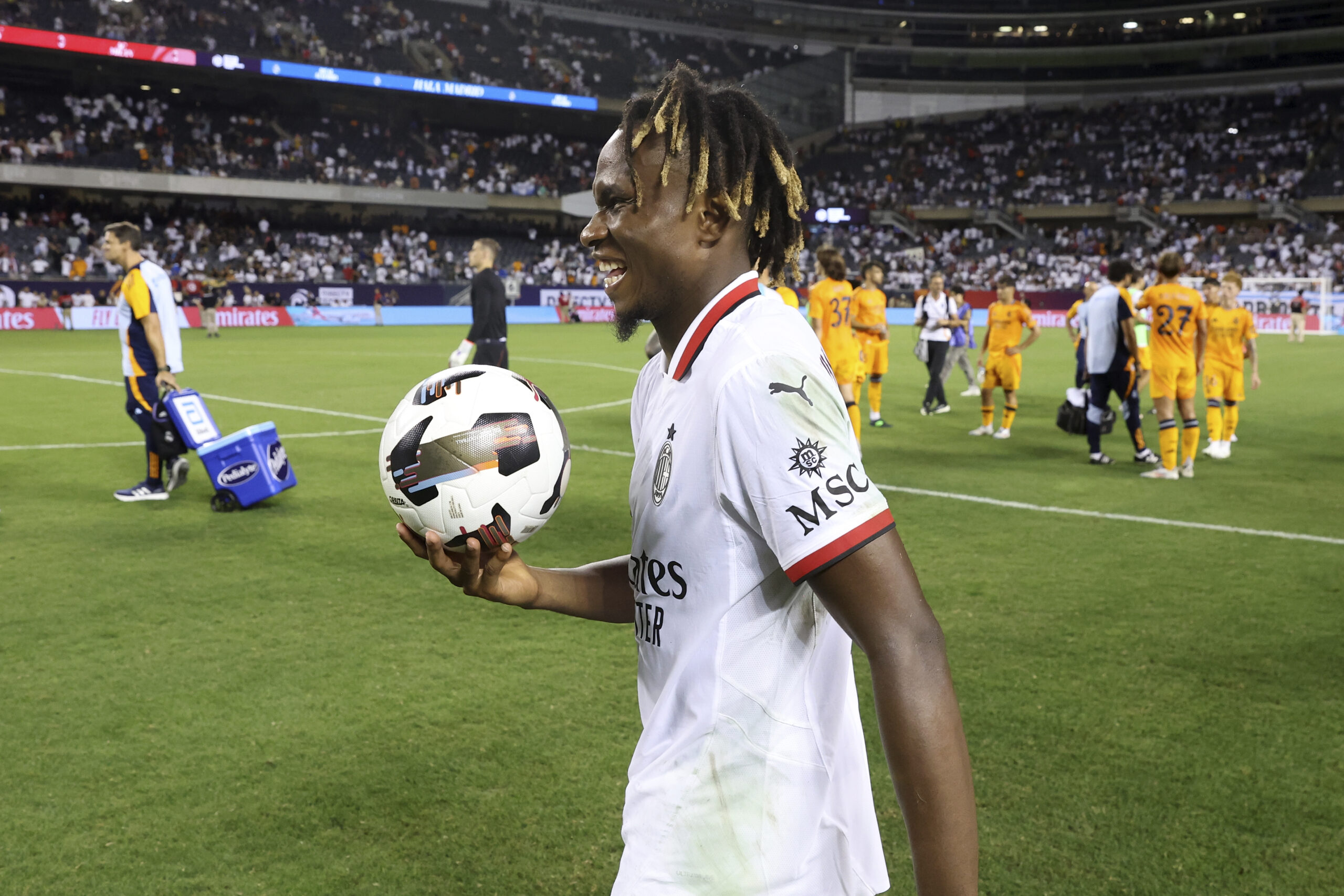 CHICAGO, ILLINOIS - JULY 31: Samuel Chukwueze of AC Milan celebrates the win at end of the Pre-Season Friendly match between AC Milan and Real Madrid at Soldier Field on July 31, 2024 in Chicago, Illinois. (Photo by Giuseppe Cottini/AC Milan via Getty Images)