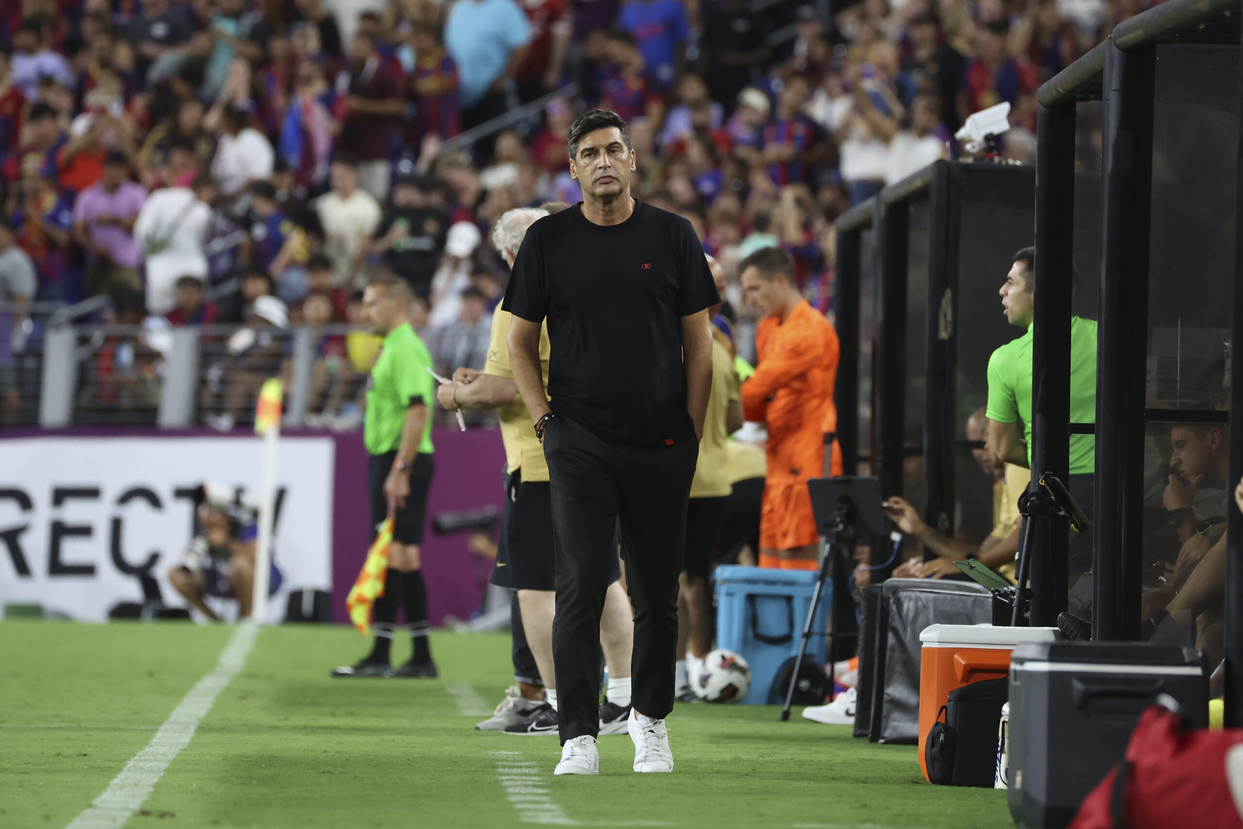 BALTIMORE, MARYLAND - AUGUST 06: Paulo Fonseca Head coach of AC Milan looks on during the Pre-Season Friendly match between AC Milan and FC Barcelona at M&T Bank Stadium on August 06, 2024 in Baltimore, Maryland. (Photo by Giuseppe Cottini/AC Milan via Getty Images)