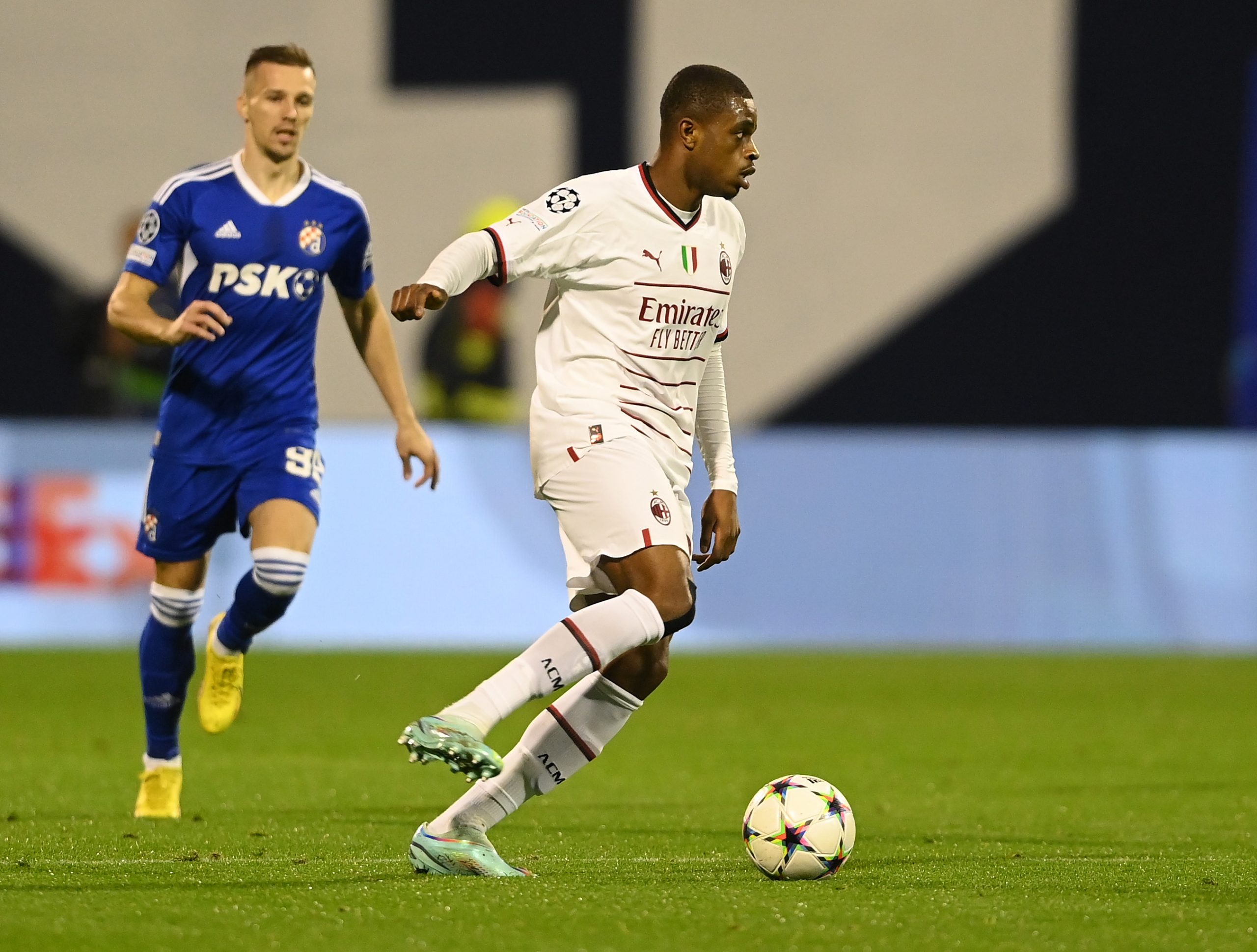 ZAGREB, CROATIA - OCTOBER 25: Pierre Kalulu of AC Milan in action during the UEFA Champions League group E match between Dinamo Zagreb and AC Milan at Stadion Maksimir on October 25, 2022 in Zagreb, Croatia. (Photo by Claudio Villa/AC Milan via Getty Images)