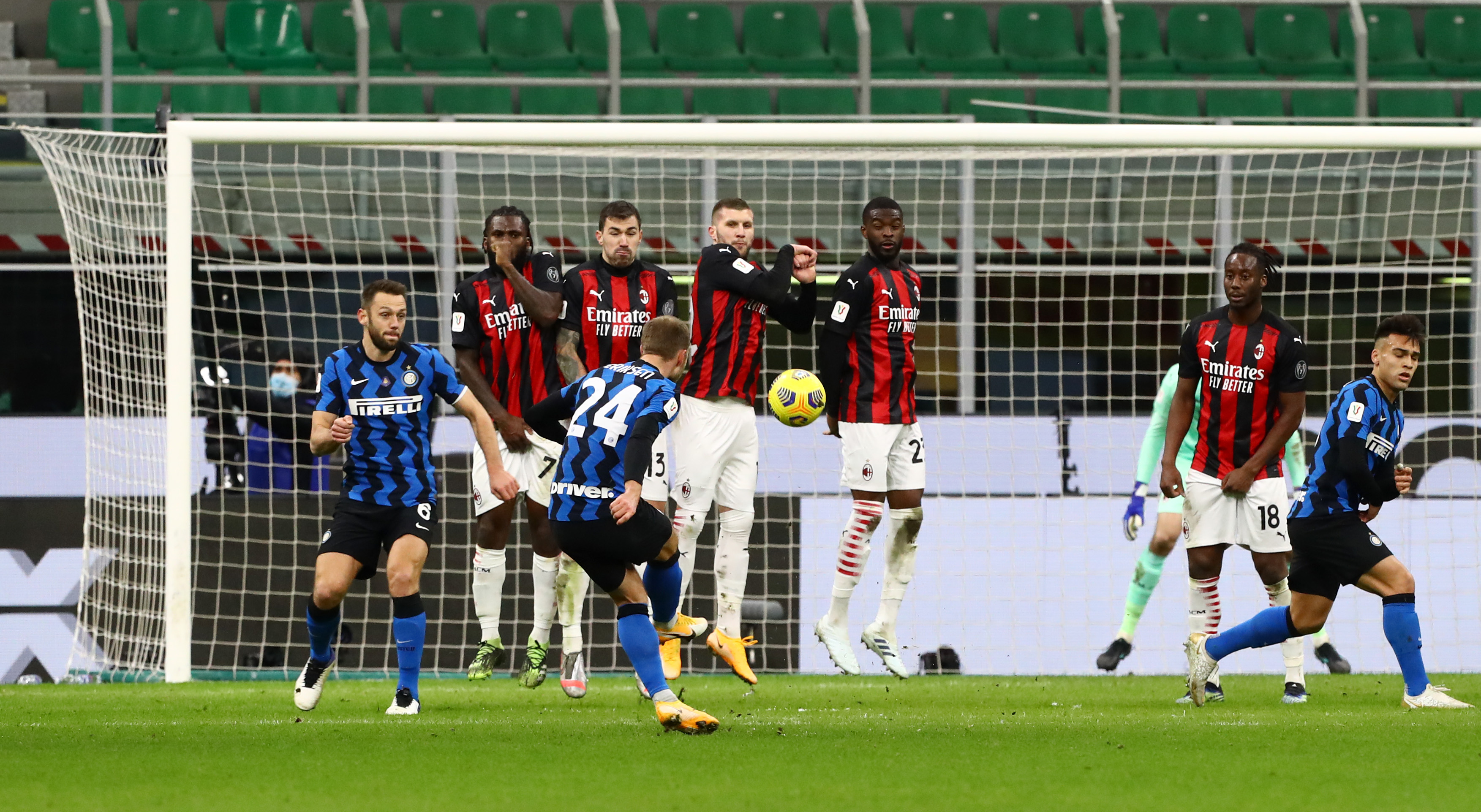 La punizione vincente di Eriksen in Coppa Italia contro il Milan