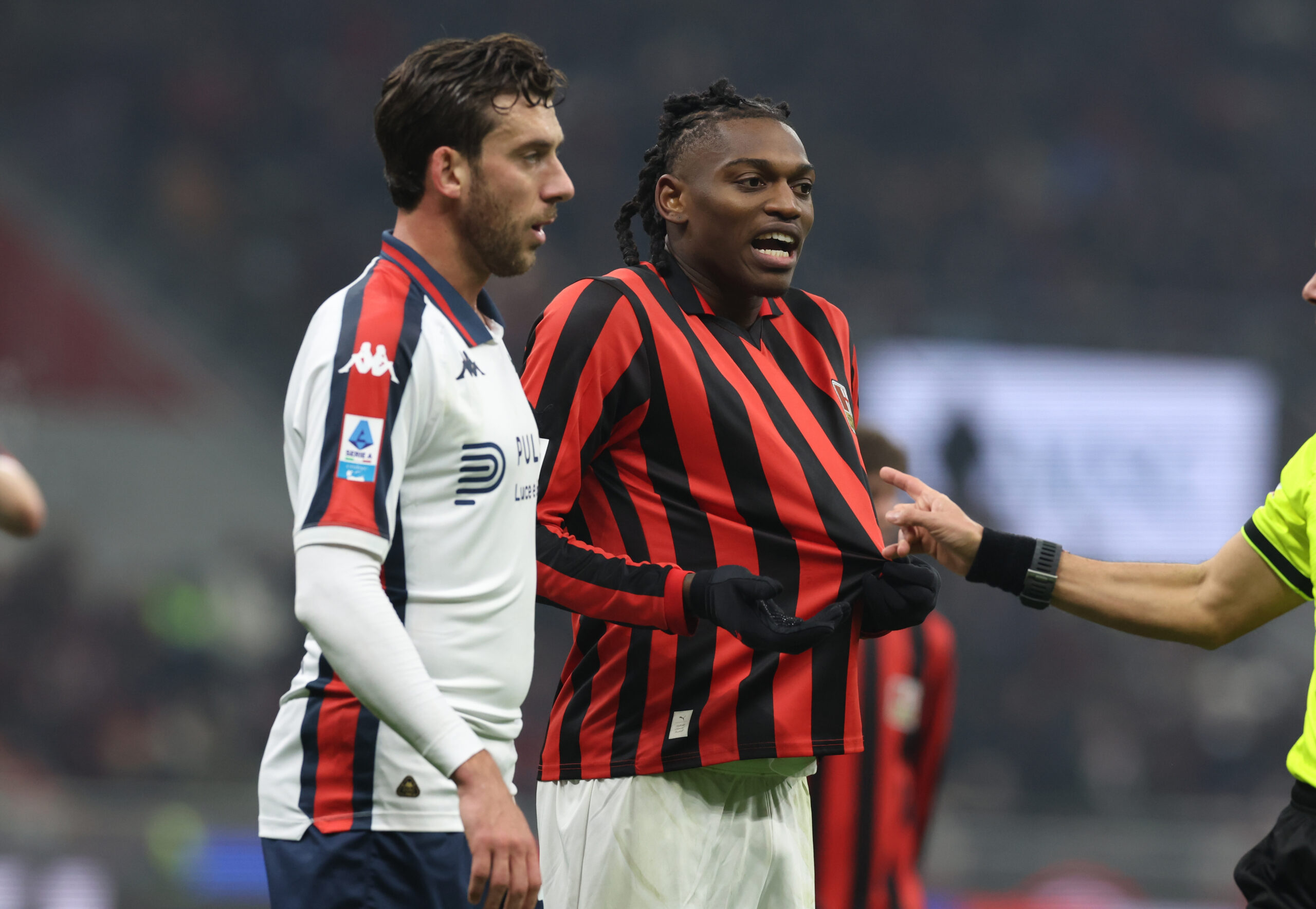 MILAN, ITALY - DECEMBER 15: Rafael Leao of AC Milan reacts during the Serie A match between AC Milan and Genoa at Stadio Giuseppe Meazza on December 15, 2024 in Milan, Italy. (Photo by Claudio Villa/AC Milan via Getty Images)