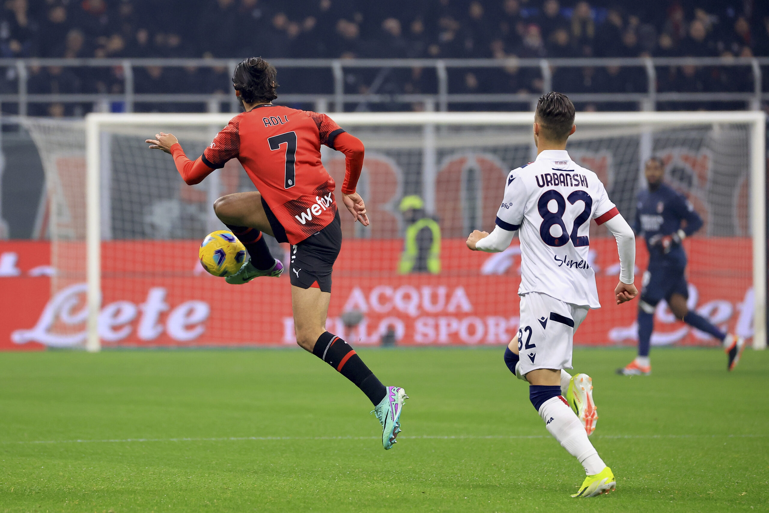 MILAN, ITALY - JANUARY 27: Yacine Adli of AC Milan in action during the Serie A TIM match between AC Milan and Bologna FC - Serie A TIM at Stadio Giuseppe Meazza on January 27, 2024 in Milan, Italy. (Photo by Giuseppe Cottini/AC Milan via Getty Images)