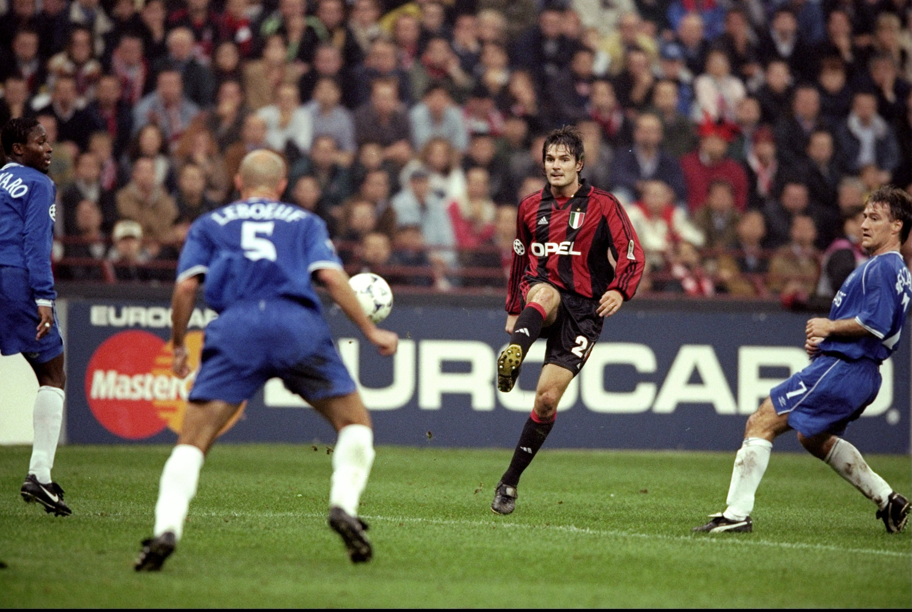 26 Oct 1999: Andres ''Guly'' Guglielminpietro of AC Milan crosses into the Chelsea box during the UEFA Champions League Group H match at the San Siro Stadium in Milan, Italy. The game ended 1-1. Mandatory Credit: Clive Brunskill /Allsport