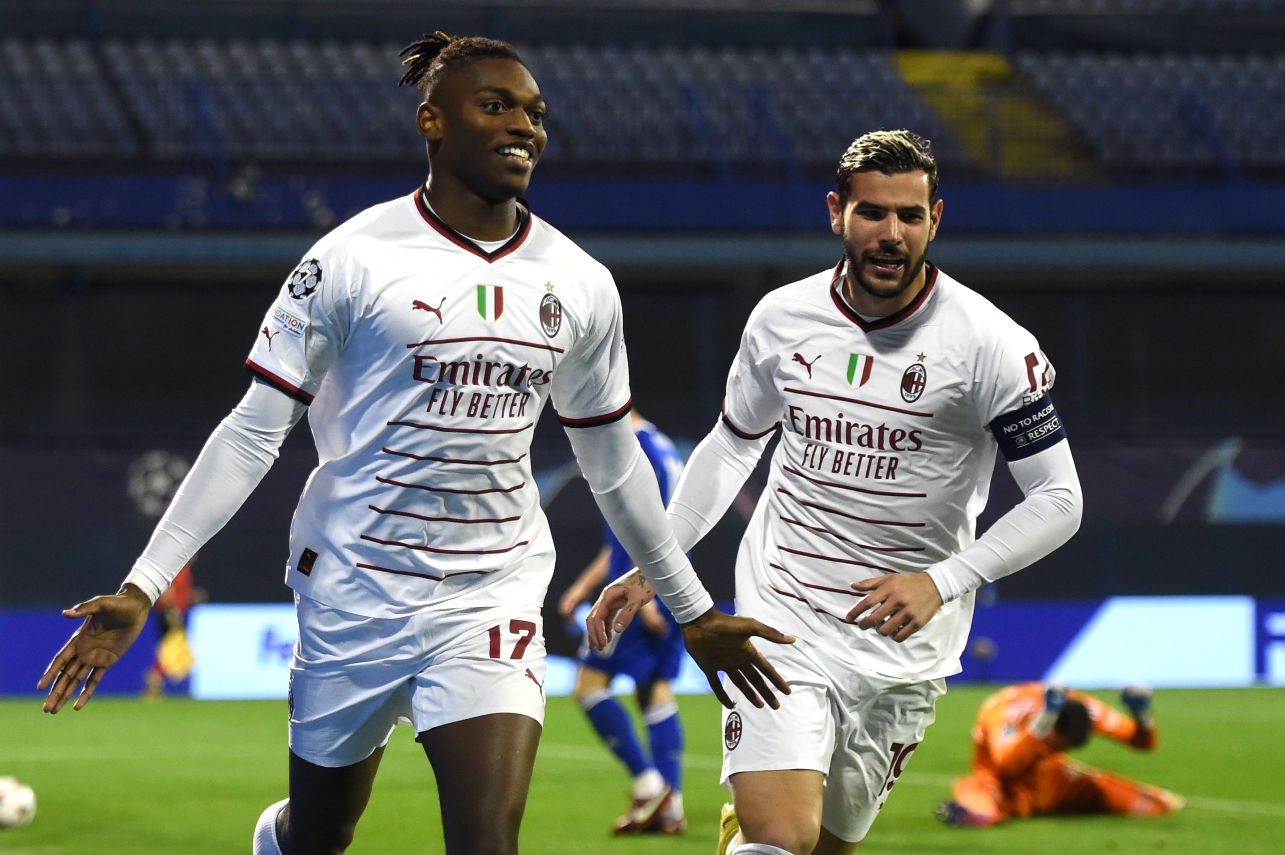 ZAGREB, CROATIA - OCTOBER 25: Rafael Leao of AC Milan celebrates scoring their side's second goal during the UEFA Champions League group E match between Dinamo Zagreb and AC Milan at Stadion Maksimir on October 25, 2022 in Zagreb, Croatia. (Photo by Jurij Kodrun/Getty Images)