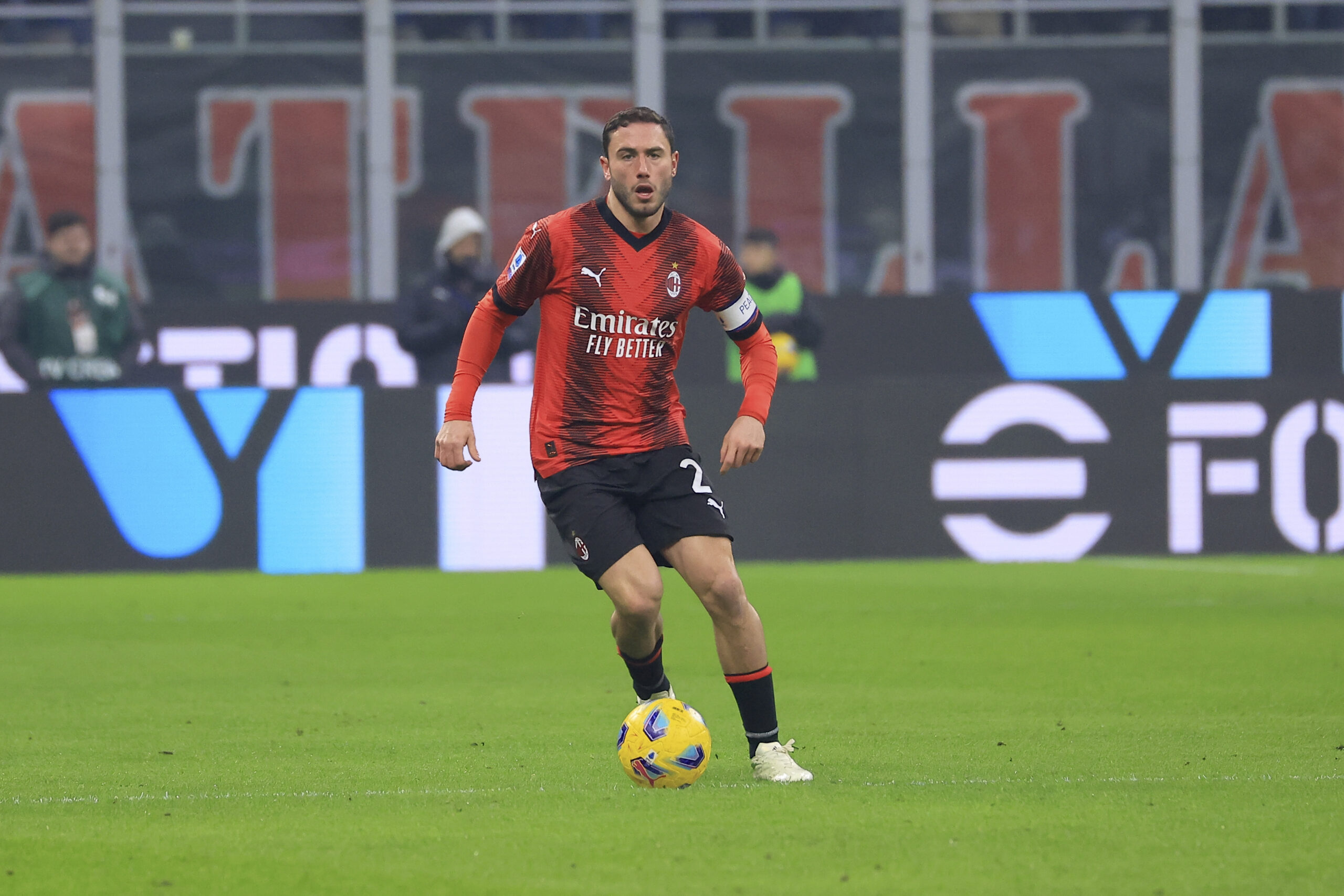 MILAN, ITALY - JANUARY 14: Davide Calabria of AC Milan in action during the Serie A TIM match between AC Milan and AS Roma - Serie A TIM at Stadio Giuseppe Meazza on January 14, 2024 in Milan, Italy. (Photo by Giuseppe Cottini/AC Milan via Getty Images)