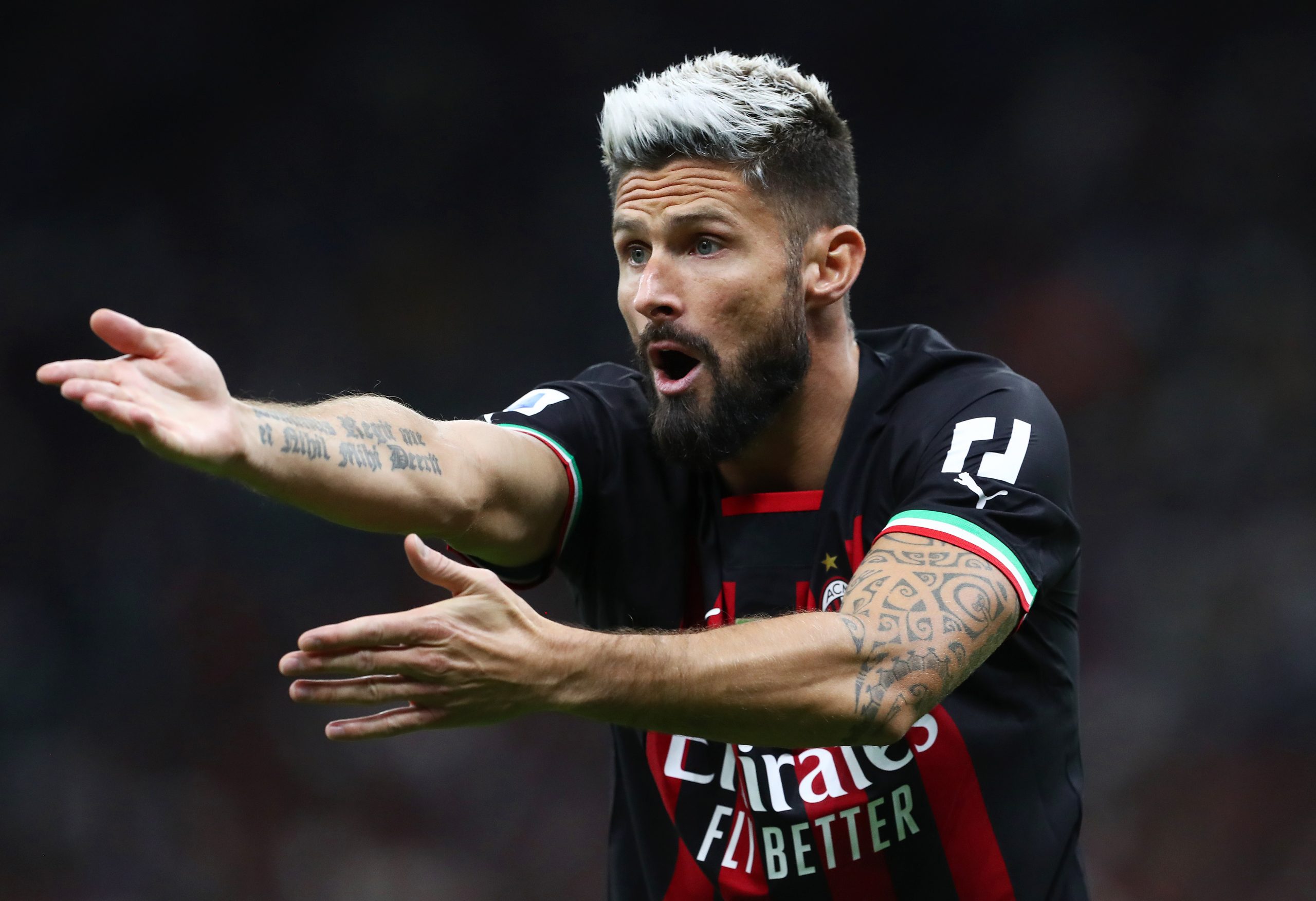 MILAN, ITALY - SEPTEMBER 18: Olivier Giroud of AC Milan reacts during the Serie A match between AC Milan and SSC Napoli at Stadio Giuseppe Meazza on September 18, 2022 in Milan, Italy. (Photo by Marco Luzzani/Getty Images)
