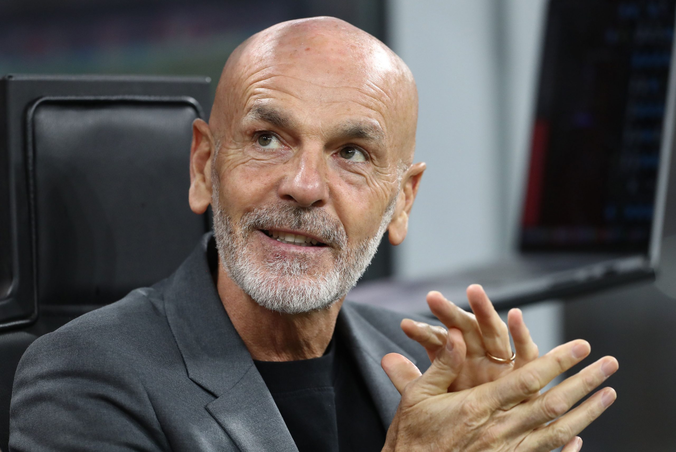 MILAN, ITALY - NOVEMBER 05: AC Milan coach Stefano Pioli looks on before the Serie A match between AC Milan and Spezia Calcio at Stadio Giuseppe Meazza on November 05, 2022 in Milan, Italy. (Photo by Marco Luzzani/Getty Images)