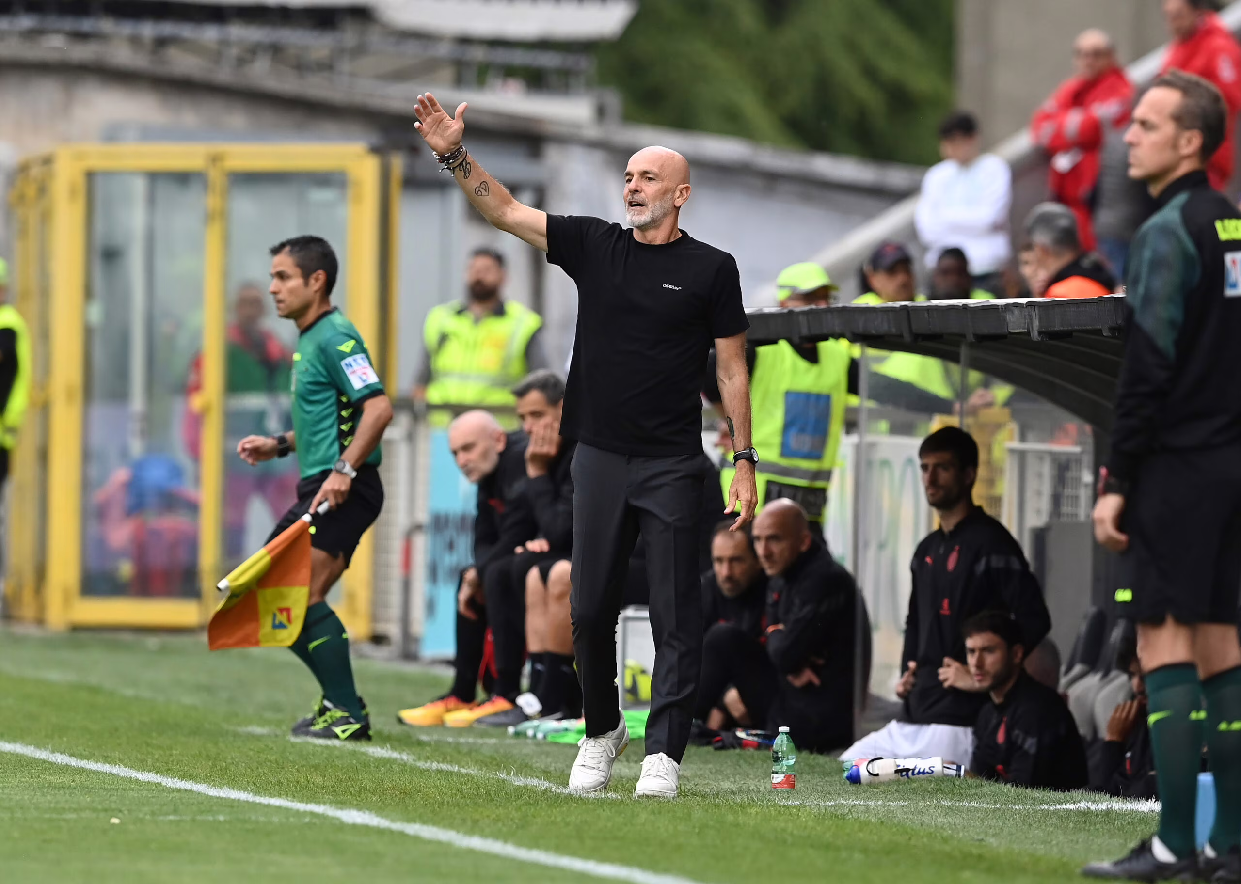 LA SPEZIA, ITALY - MAY 13: Head coach of AC Milan Stefano Pioli reacts durin the Serie A match between Spezia Calcio and AC Milan at Stadio Alberto Picco on May 13, 2023 in La Spezia, Italy. (Photo by Claudio Villa/AC Milan via Getty Images)