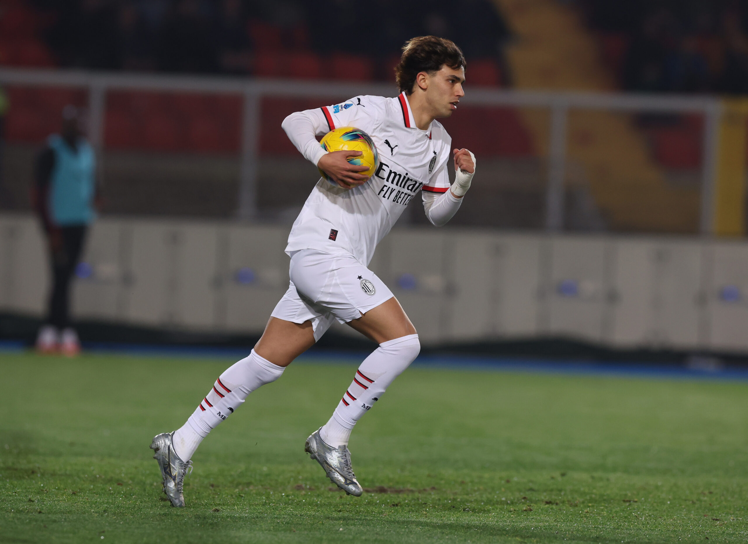 LECCE, ITALY - MARCH 08: Joao Felix of AC Milan celebrates for the autogoal of Antonino Gallo of Lecce the Serie A match between Lecce and AC Milan at Stadio Via del Mare on March 08, 2025 in Lecce, Italy. (Photo by Claudio Villa/AC Milan via Getty Images)