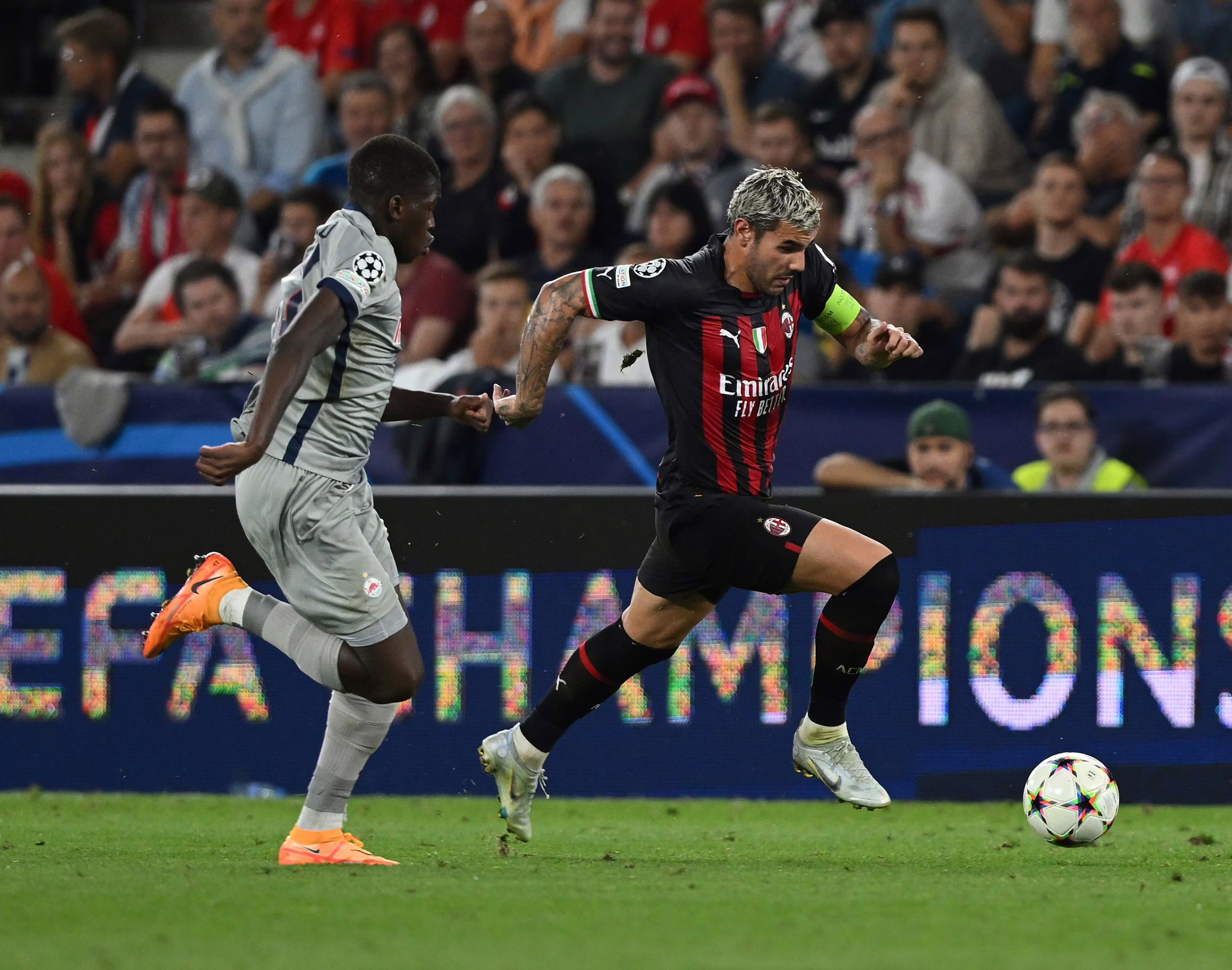 SALZBURG, AUSTRIA - SEPTEMBER 06: Theo Hernandez of AC Milan in action during the UEFA Champions League group E match between FC Salzburg and AC Milan at Football Arena Salzburg on September 06, 2022 in Salzburg, Austria. (Photo by Claudio Villa/AC Milan via Getty Images)