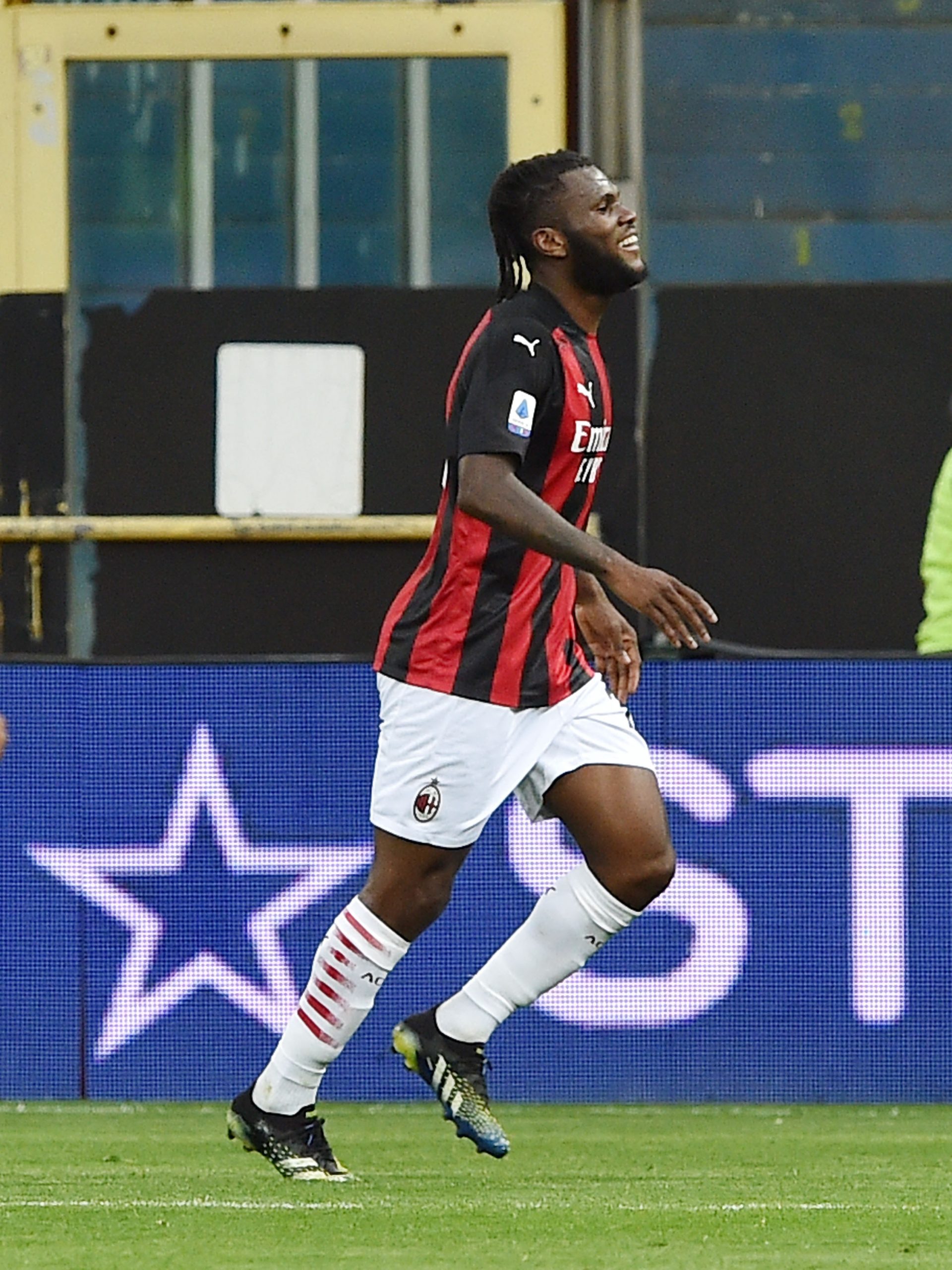 PARMA, ITALY - APRIL 10: Franck Kessie of AC Milan celebrates after scoring goal 0-2 during the Serie A match between Parma Calcio and AC Milan at Stadio Ennio Tardini on April 10, 2021 in Parma, Italy. Sporting stadiums around Italy remain under strict restrictions due to the Coronavirus Pandemic as Government social distancing laws prohibit fans inside venues resulting in games being played behind closed doors. (Photo by Giuseppe Bellini/Getty Images)