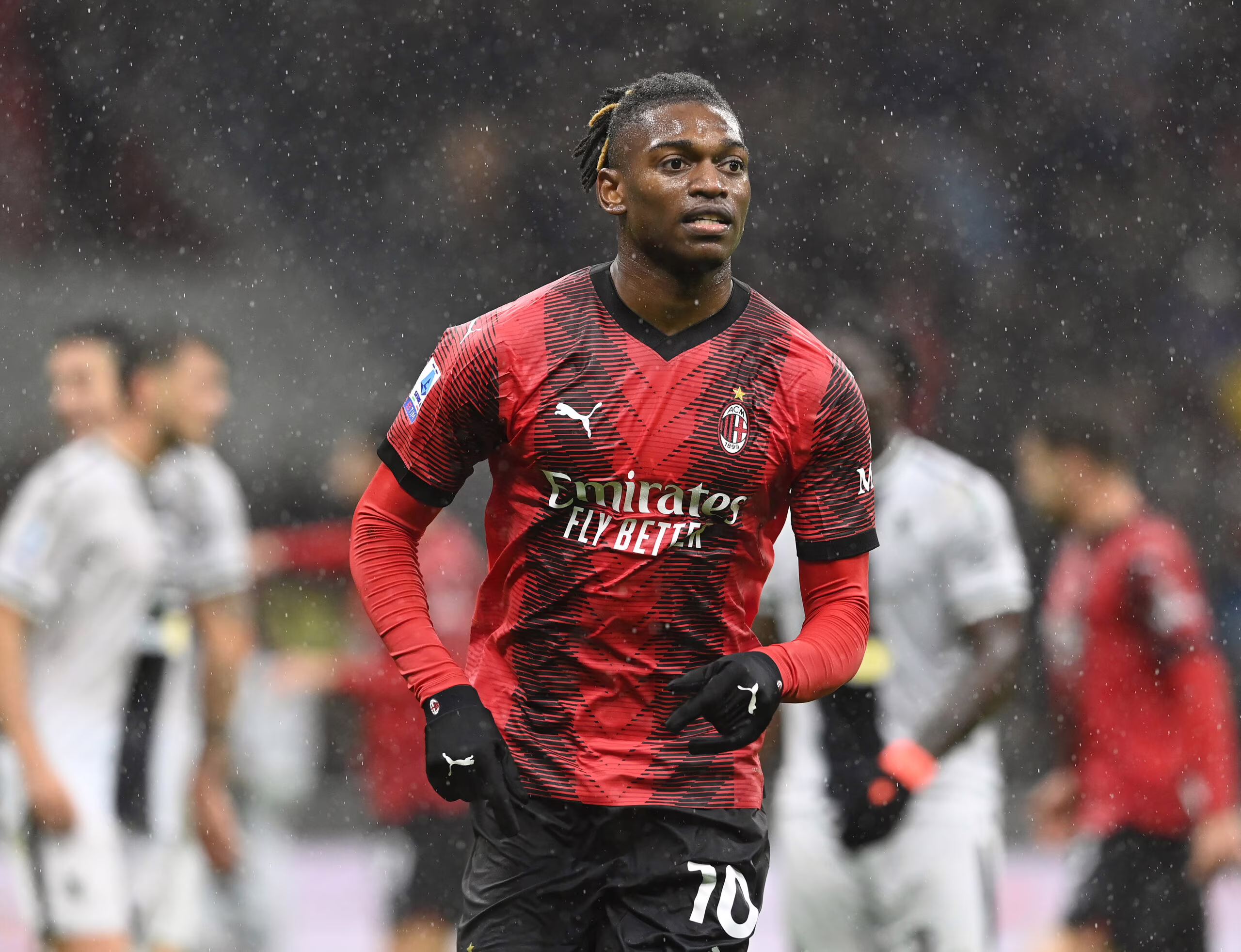 MILAN, ITALY - NOVEMBER 04: Rafael Leao of AC Milan in action during the Serie A TIM match between AC Milan and Udinese Calcio at Stadio Giuseppe Meazza on November 04, 2023 in Milan, Italy. (Photo by Claudio Villa/AC Milan via Getty Images)