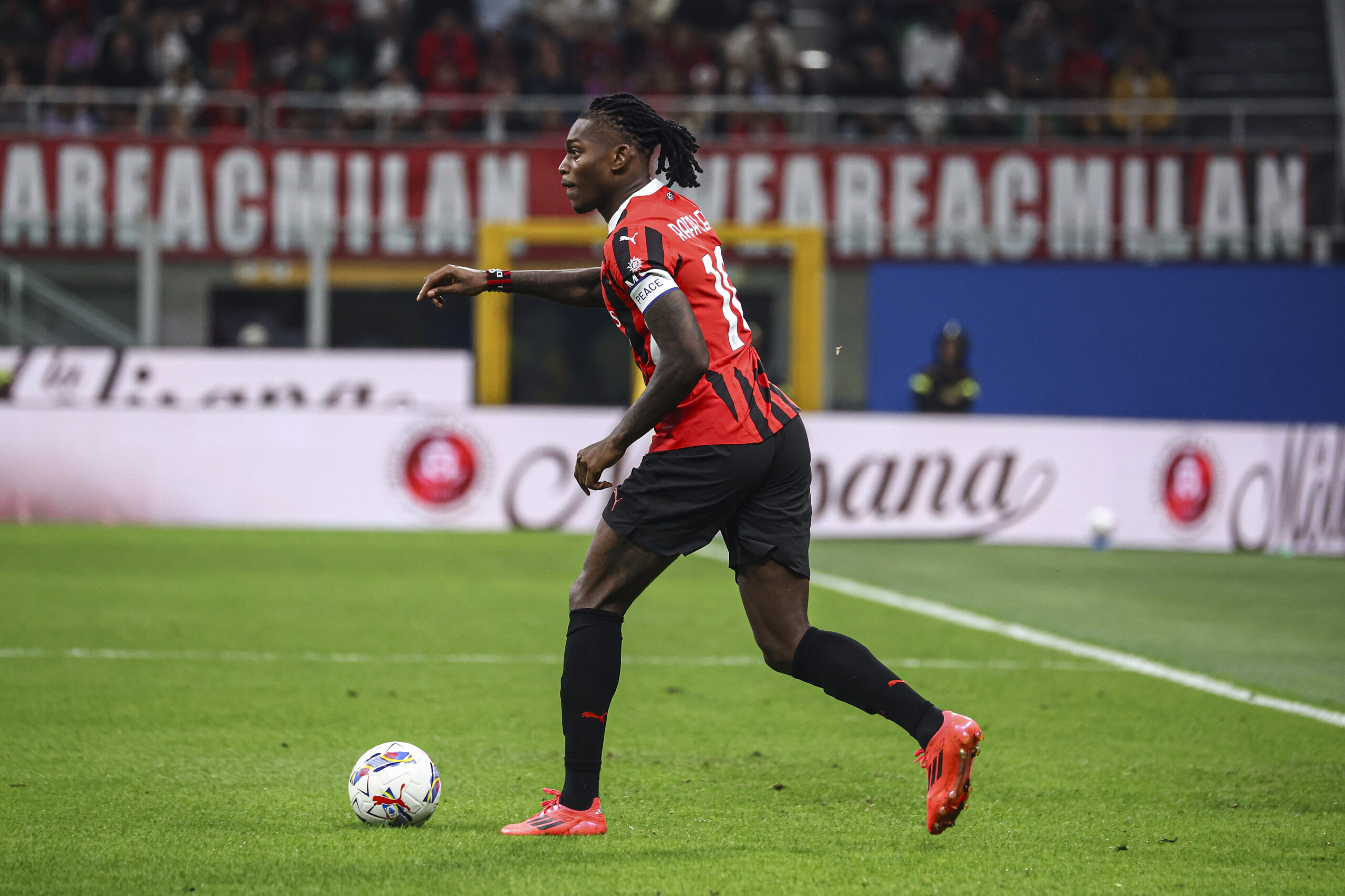 MILAN, ITALY - SEPTEMBER 27: Rafael Leao of AC Milan in action during the Serie A match between AC Milan and Lecce at Stadio Giuseppe Meazza on September 27, 2024 in Milan, Italy. (Photo by Giuseppe Cottini/AC Milan via Getty Images)