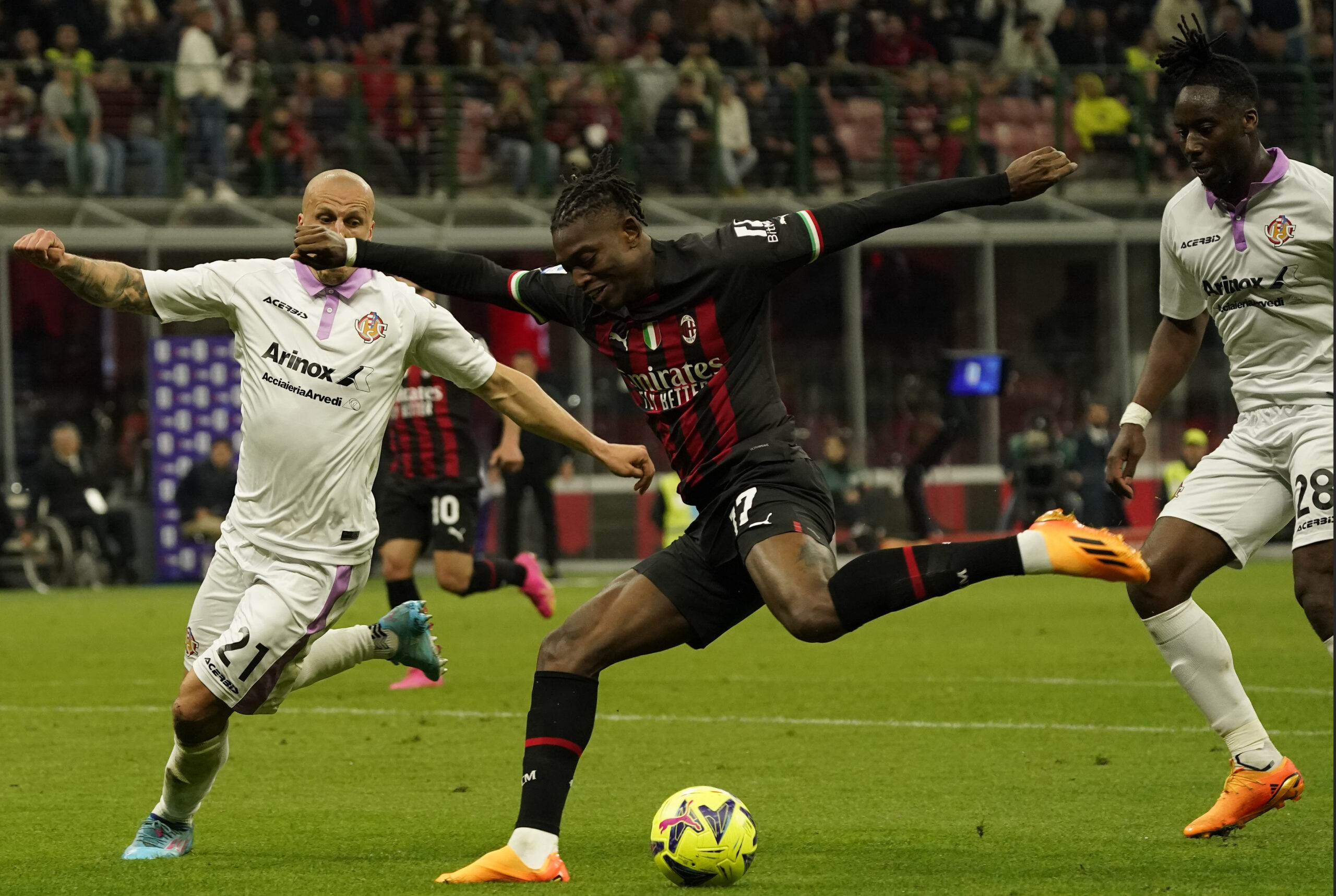 MILAN, ITALY - MAY 03: Rafael Leão of AC Milan in action during the Serie A match between AC Milan and US Cremonese at Stadio Giuseppe Meazza on May 03, 2023 in Milan, Italy. (Photo by Pier Marco Tacca/AC Milan via Getty Images)