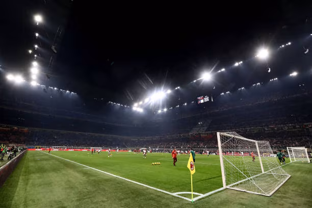 MILAN, ITALY - DECEMBER 29: General view inside the stadium prior to the Serie A match between AC Milan and AS Roma at Stadio Giuseppe Meazza on December 29, 2024 in Milan, Italy. (Photo by Marco Luzzani/Getty Images)