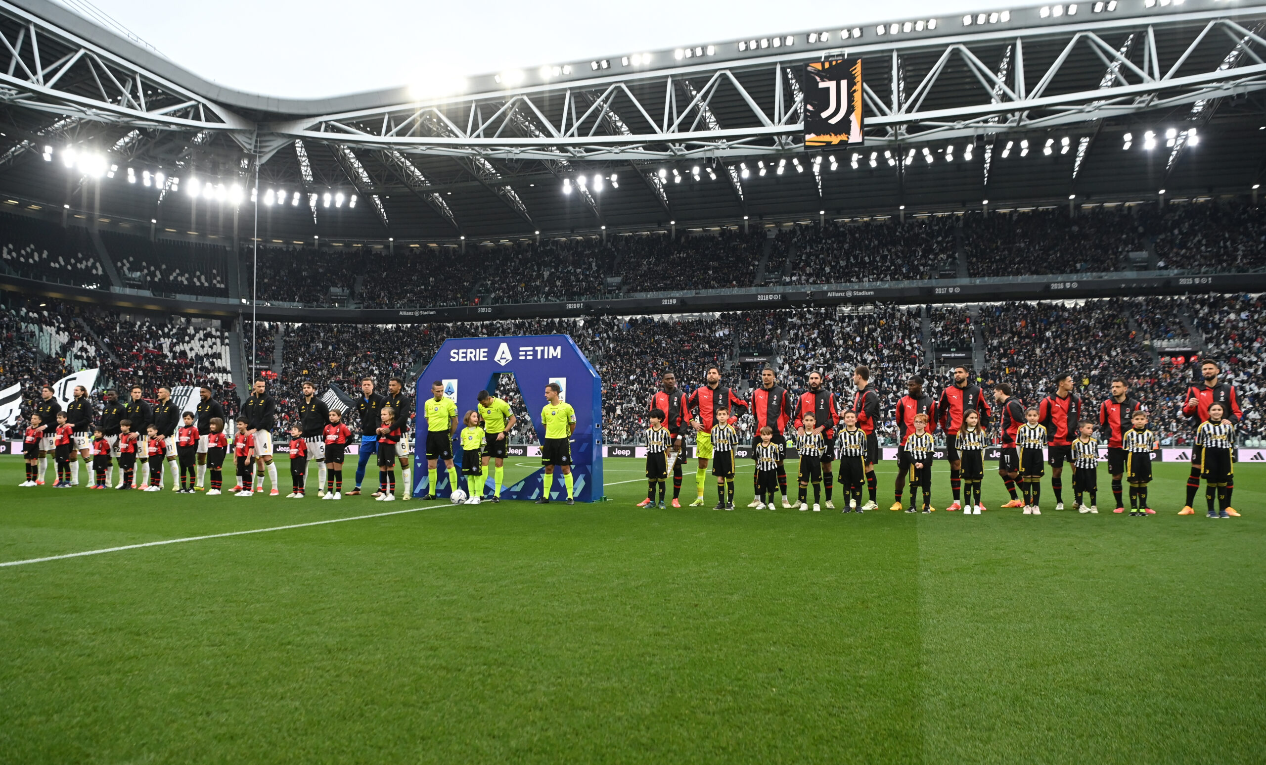 TURIN, ITALY - APRIL 27: Players of AC Milan arrives line up prior to the Serie A TIM match between Juventus and AC Milan at Allianz Stadium on April 27, 2024 in Turin, Italy. (Photo by Claudio Villa/AC Milan via Getty Images)