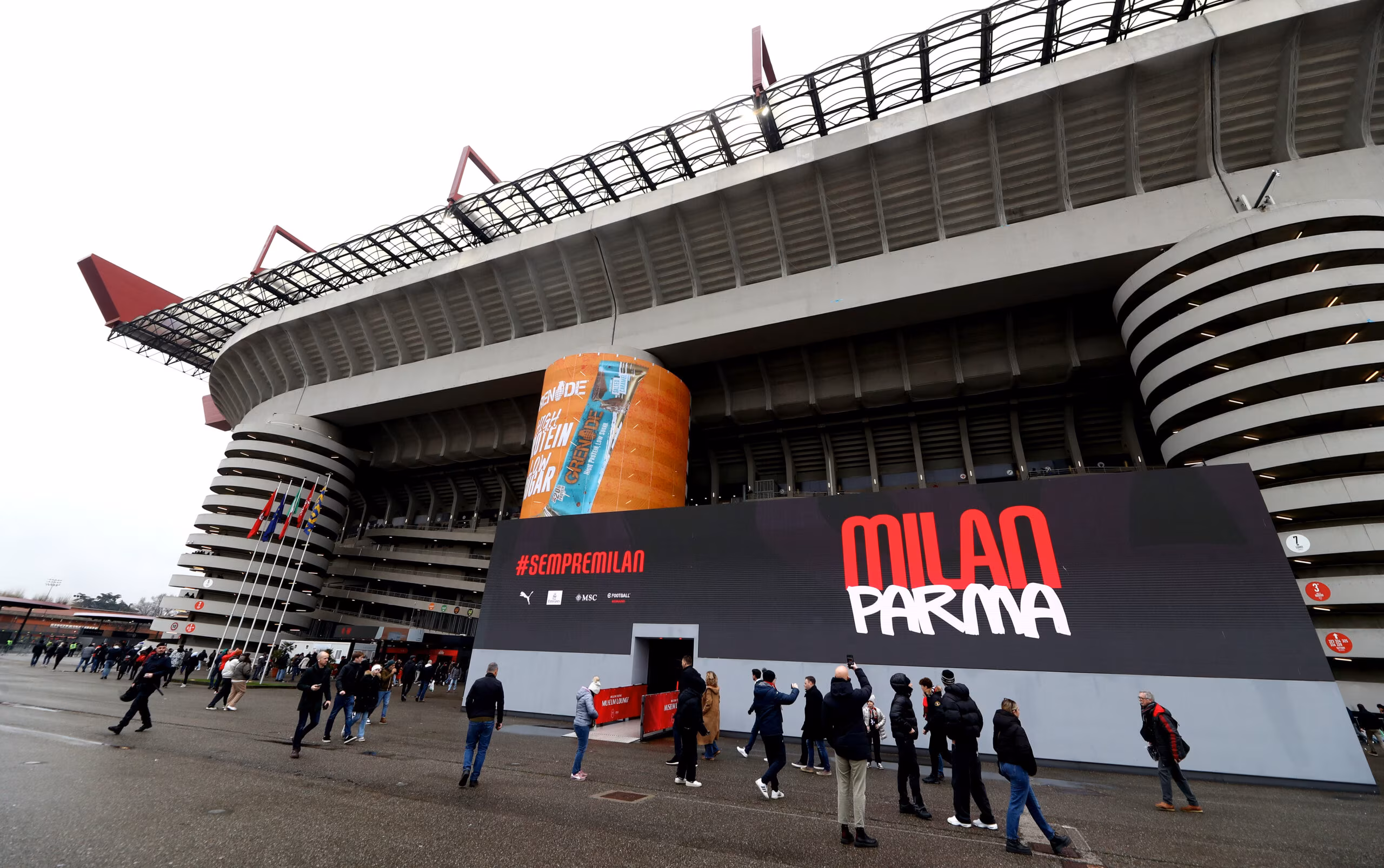 MILAN, ITALY - JANUARY 26: A general view outside the stadium as fans arrive ahead of the Serie A match between AC Milan and Parma at Stadio Giuseppe Meazza on January 26, 2025 in Milan, Italy. (Photo by Marco Luzzani/Getty Images)