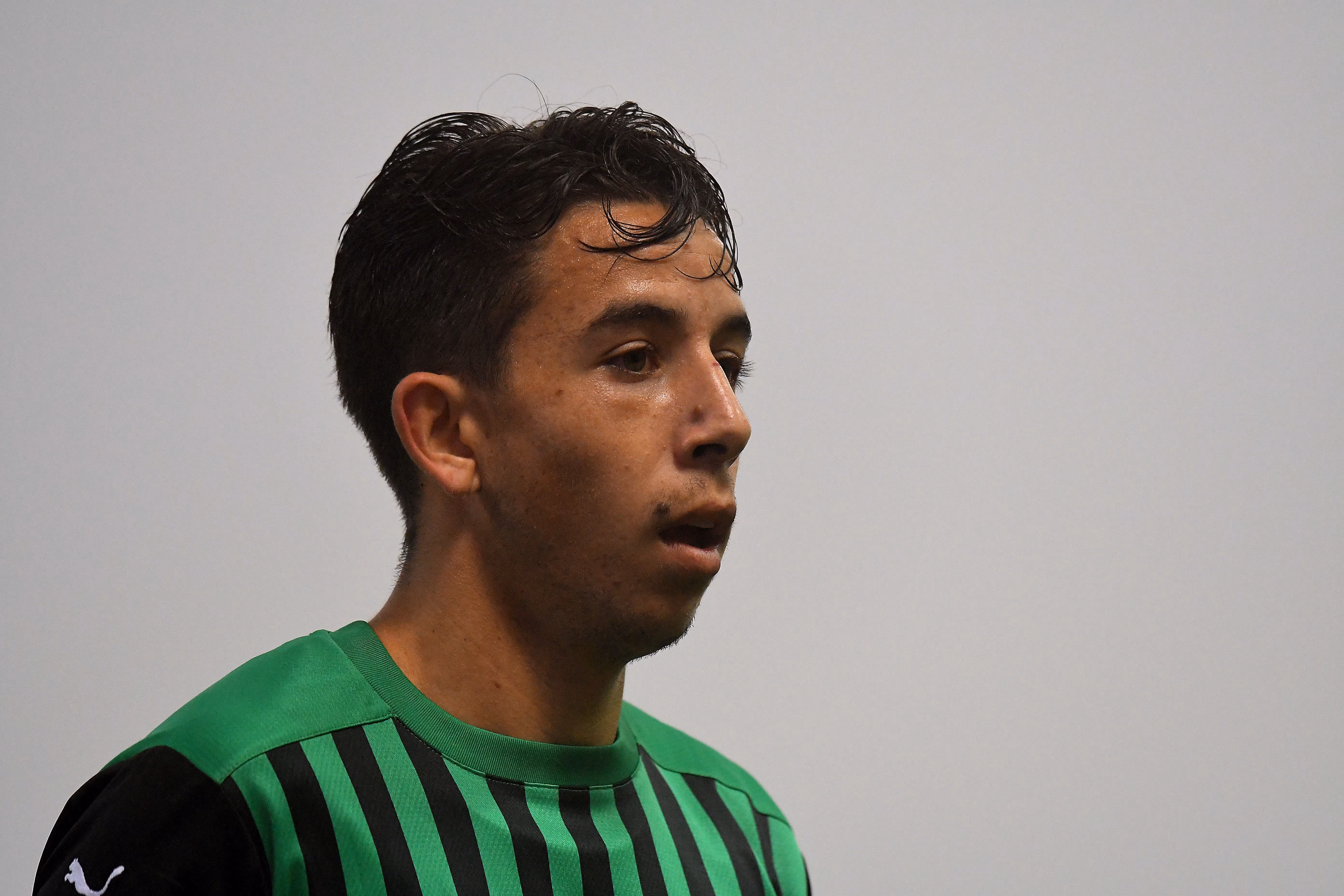 REGGIO NELL'EMILIA, ITALY - OCTOBER 23: Maxime Lopez of US Sassuolo looks on during the Serie A match between US Sassuolo and Torino FC at Mapei Stadium - Città del Tricolore on October 23, 2020 in Reggio nell'Emilia, Italy. (Photo by Alessandro Sabattini/Getty Images)