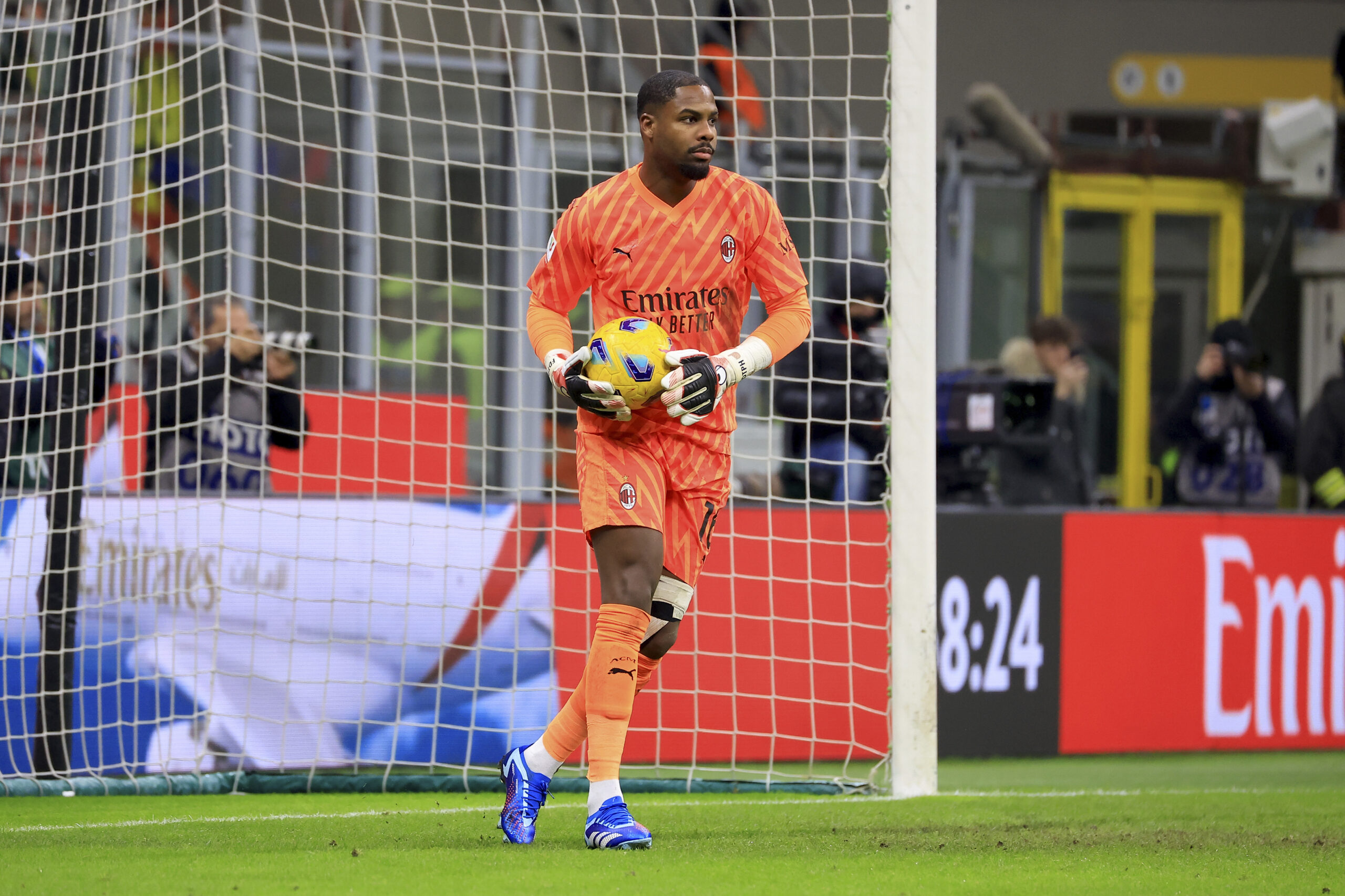 MILAN, ITALY - JANUARY 10: Mike Maignan of AC Milan looks on during the Coppa Italia match between AC Milan and Atalanta BC on January 10, 2024 in Milan, Italy. (Photo by Giuseppe Cottini/AC Milan via Getty Images)