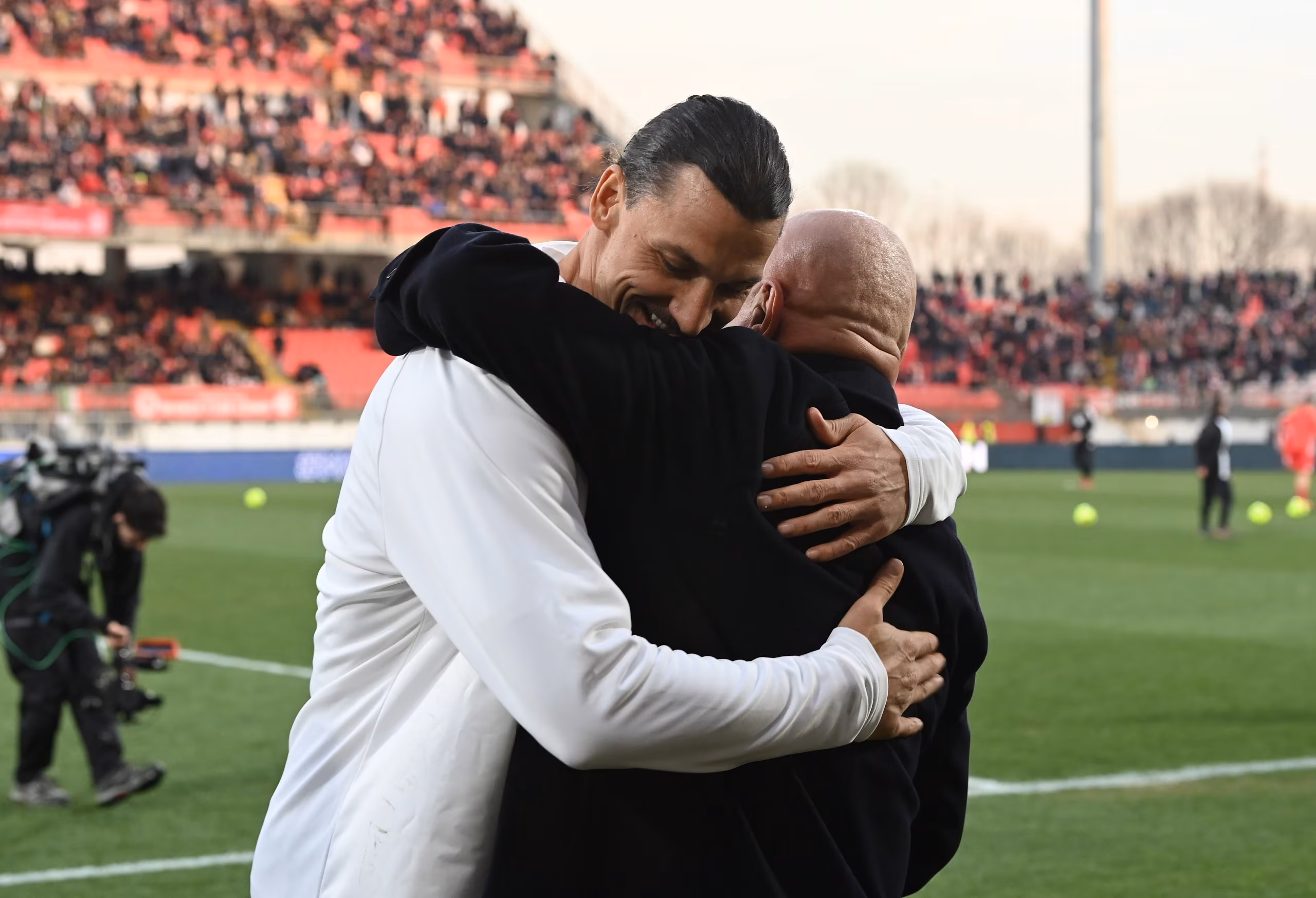 MONZA, ITALY - FEBRUARY 18: Zlatan Ibrahimovic of AC Milan and Adriano Galliani before the Serie A match between AC Monza and AC Milan at Stadio Brianteo on February 18, 2023 in Monza, Italy. (Photo by Claudio Villa/AC Milan via Getty Images)