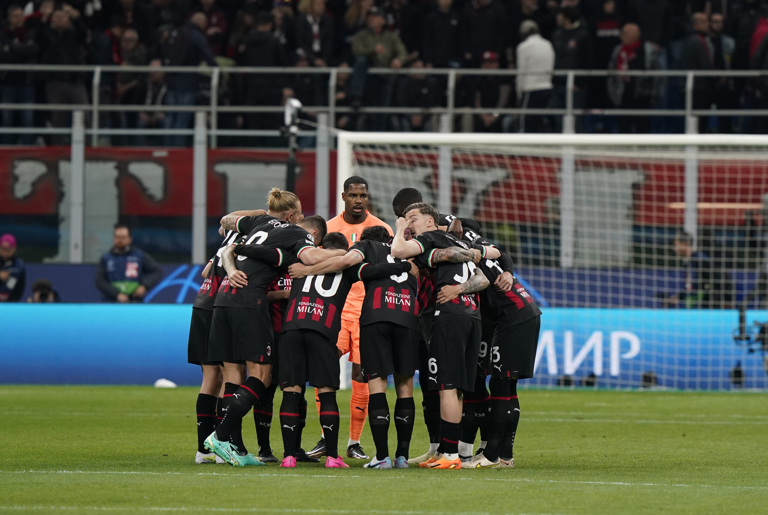 MILAN, ITALY - MAY 10: AC Milan players gather prior to the UEFA Champions League semi-final first leg match between AC Milan and FC Internazionale at San Siro on May 10, 2023 in Milan, Italy. (Photo by Pier Marco Tacca/AC Milan via Getty Images)