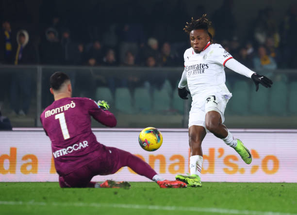 VERONA, ITALY - DECEMBER 20: Samuel Chukwueze of AC Milan in action during the Serie A match between Verona and AC Milan at Stadio Marcantonio Bentegodi on December 20, 2024 in Verona, Italy. (Photo by Giuseppe Cottini/AC Milan via Getty Images)