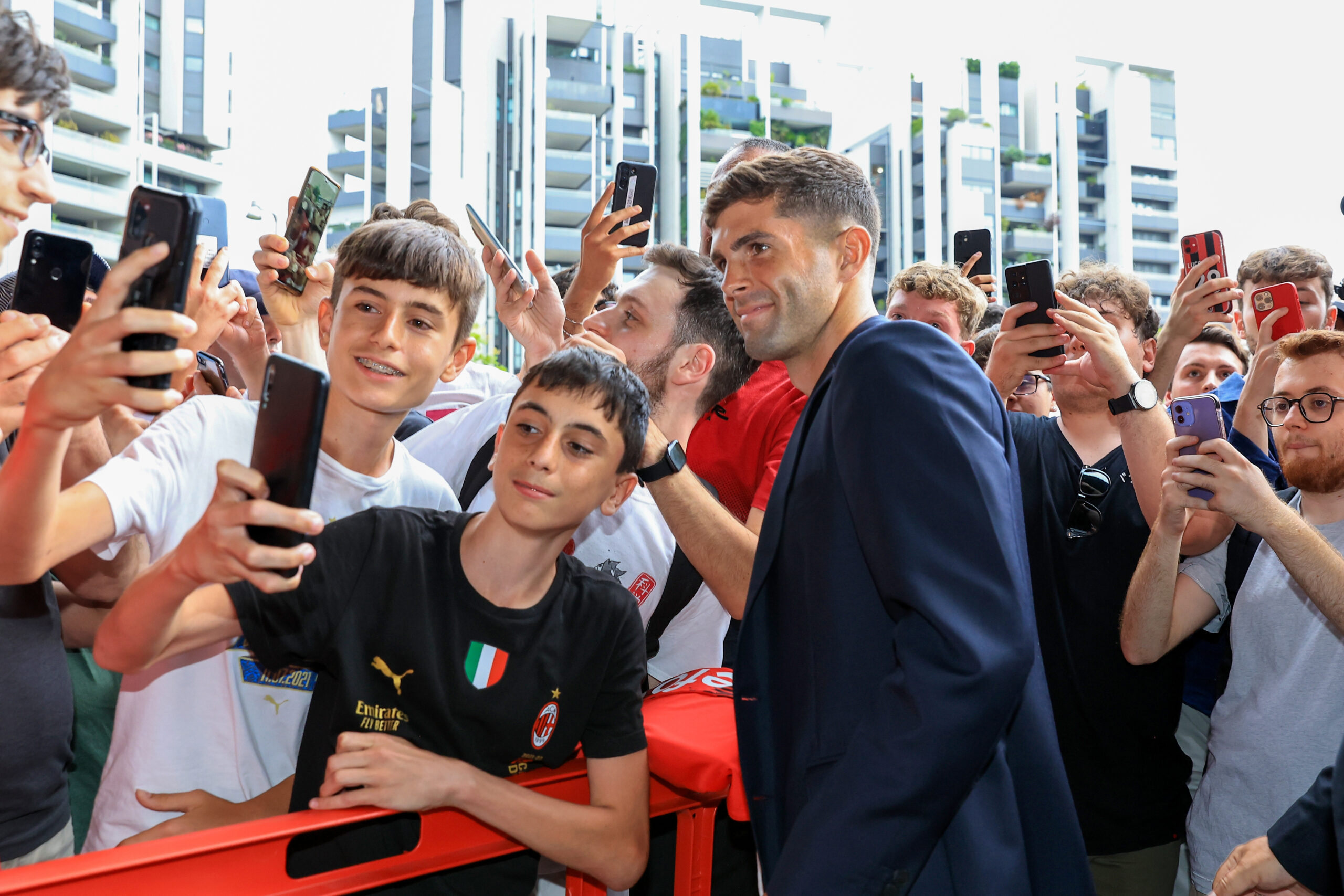 MILAN, ITALY - JULY 12: AC Milan new signing Christian Pulisic meets the fans at Casa Milan on July 12, 2023 in Milan, Italy. (Photo by Giuseppe Cottini/AC Milan via Getty Images)