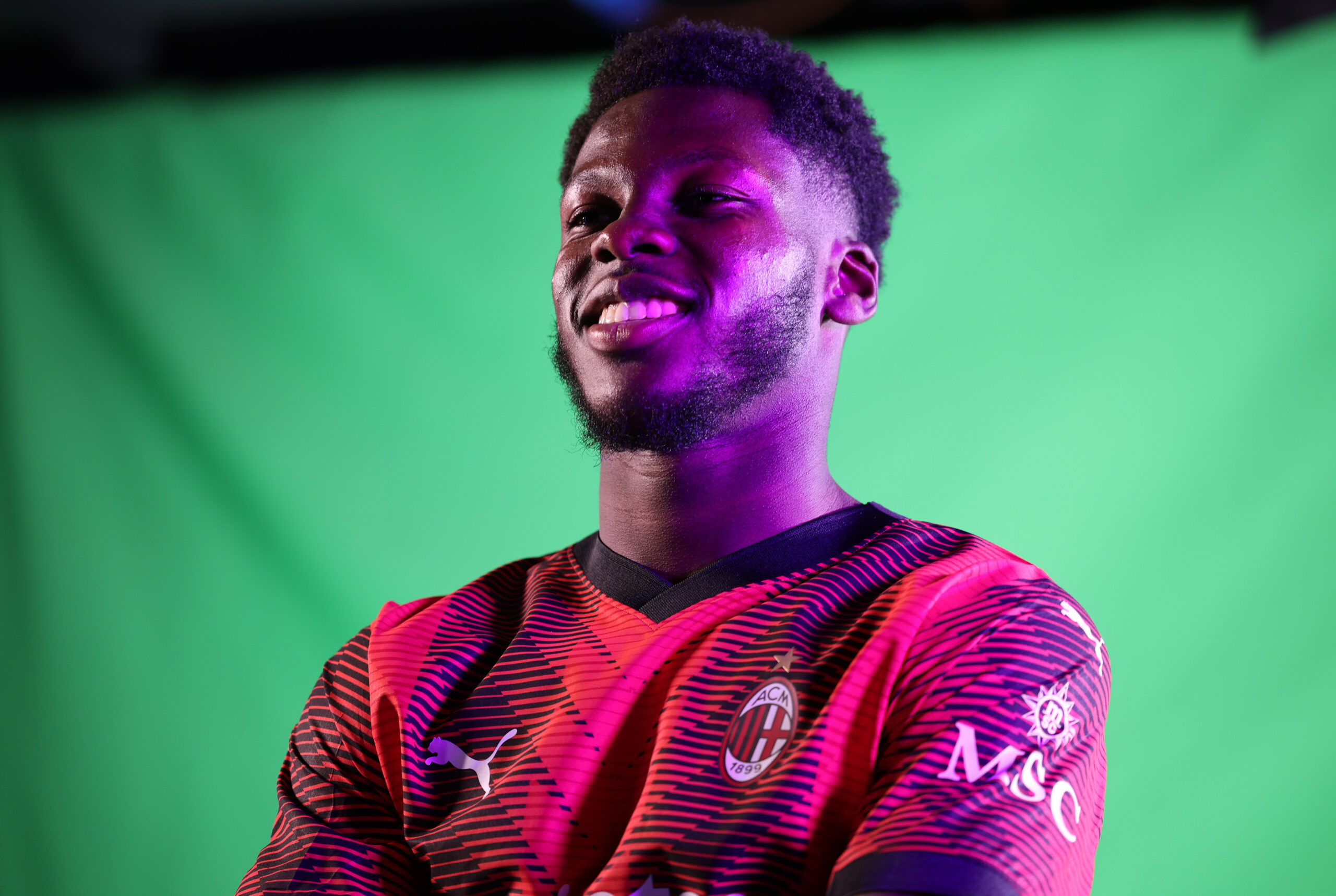 MILAN, ITALY - AUGUST 04: AC Milan new signing Yunus Dimoara Musah looks on during a photo session at Casa Milan on August 04, 2023 in Milan, Italy. (Photo by AC Milan/AC Milan via Getty Images)