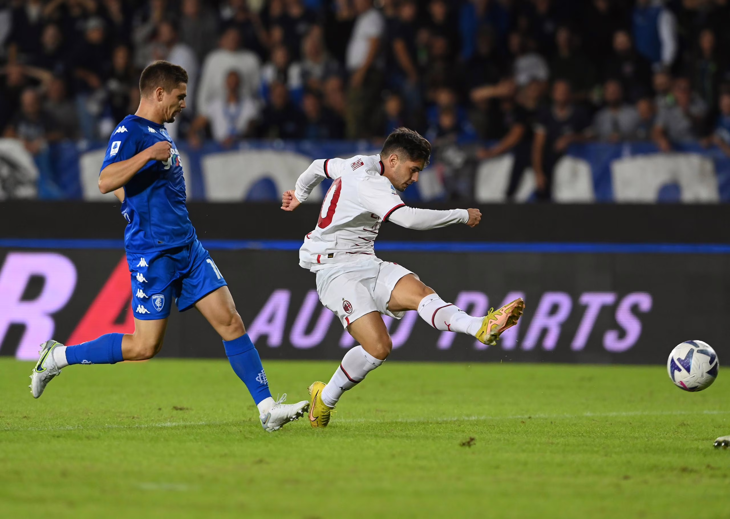 EMPOLI, ITALY - OCTOBER 01: Brahim Diaz of AC Milan in action during the Serie A match between Empoli FC and AC MIlan at Stadio Carlo Castellani on October 01, 2022 in Empoli, Italy. (Photo by Claudio Villa/AC Milan via Getty Images)