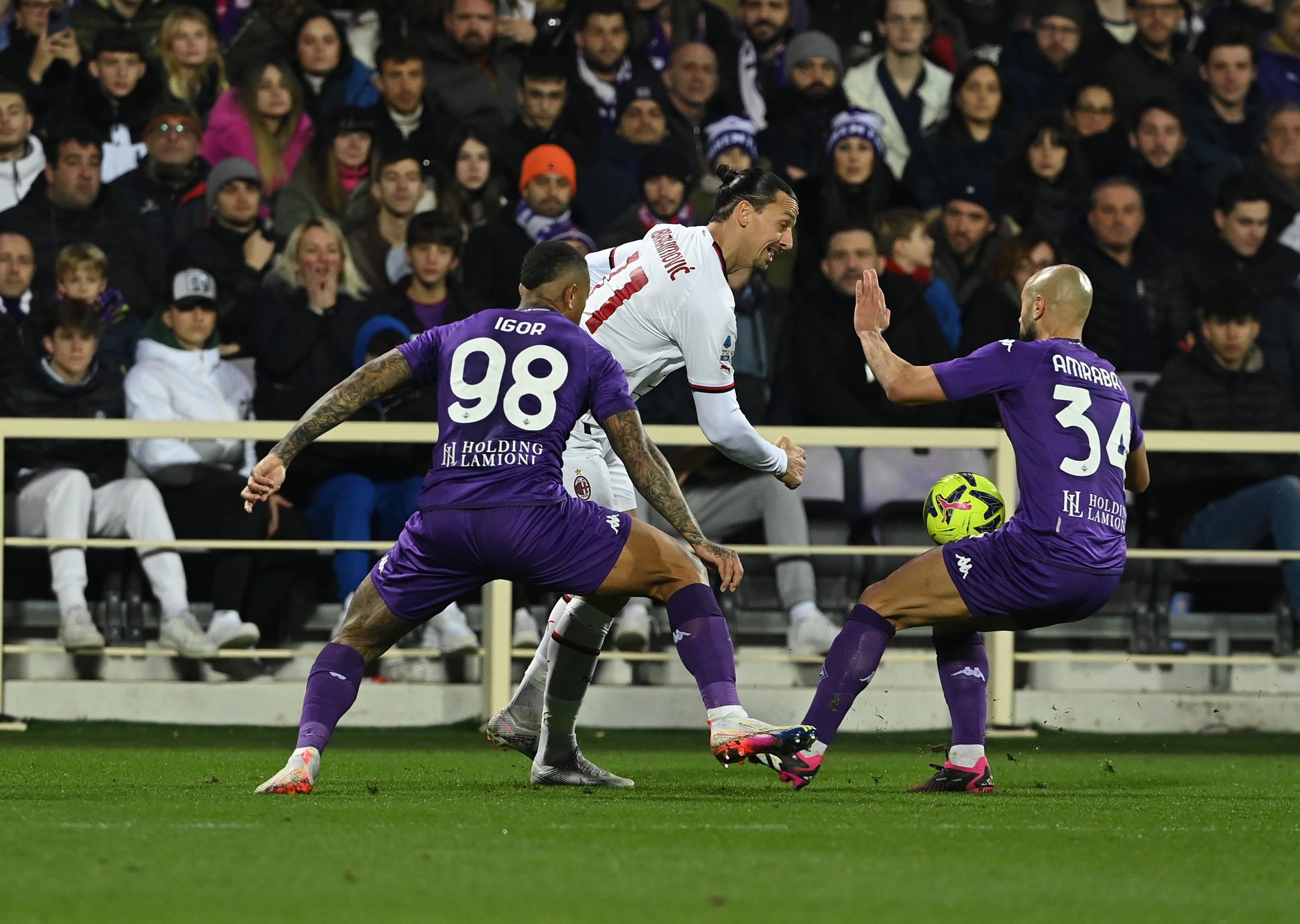 FLORENCE, ITALY - MARCH 04: Zlatan Ibrahimovic of AC Milan in action during the Serie A match between ACF Fiorentina and AC Milan at Stadio Artemio Franchi on March 04, 2023 in Florence, Italy. (Photo by Claudio Villa/AC Milan via Getty Images)