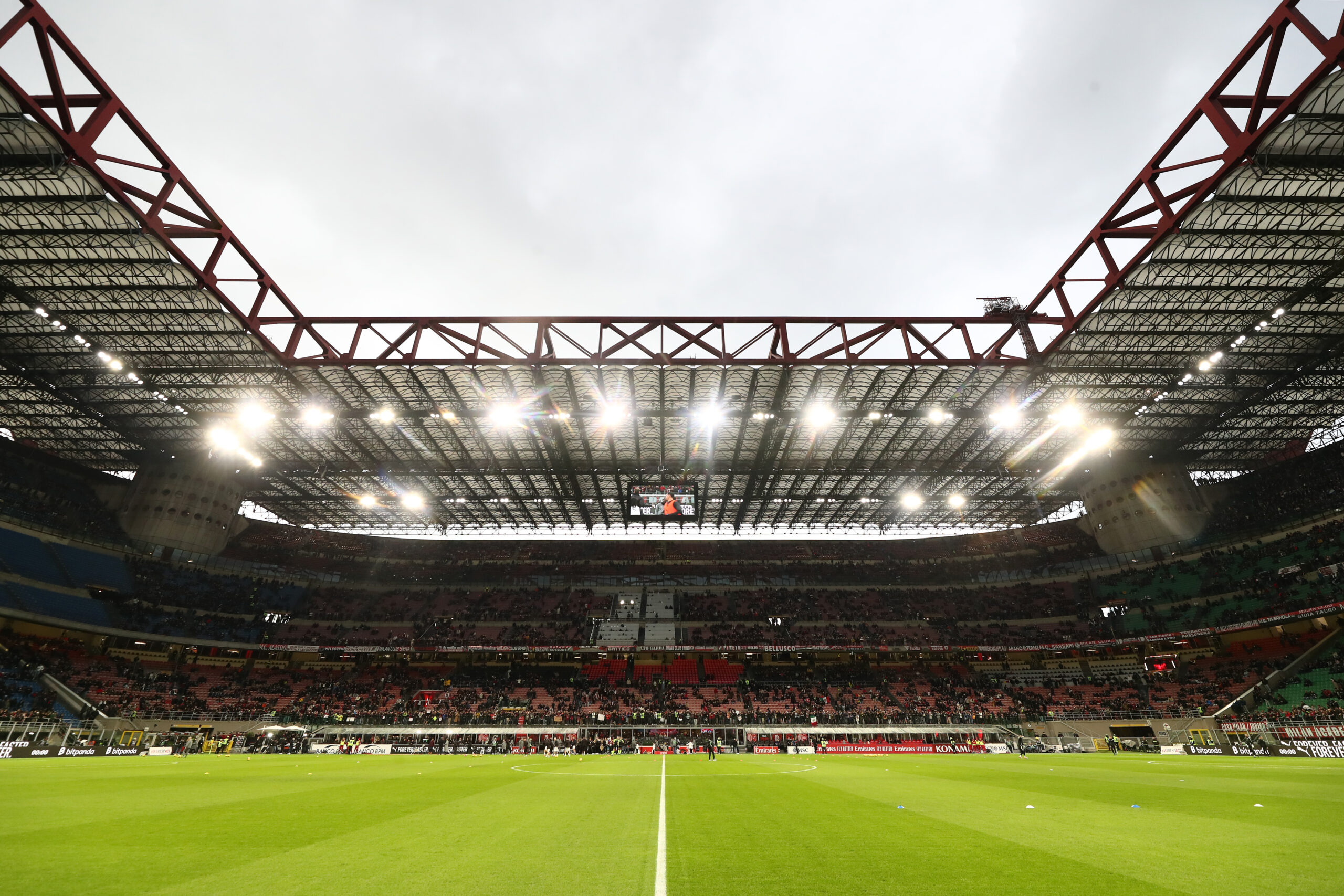 MILAN, ITALY - MARCH 15: General view inside the stadium prior to the Serie A match between AC Milan and Como at Stadio Giuseppe Meazza on March 15, 2025 in Milan, Italy. (Photo by Marco Luzzani/Getty Images)