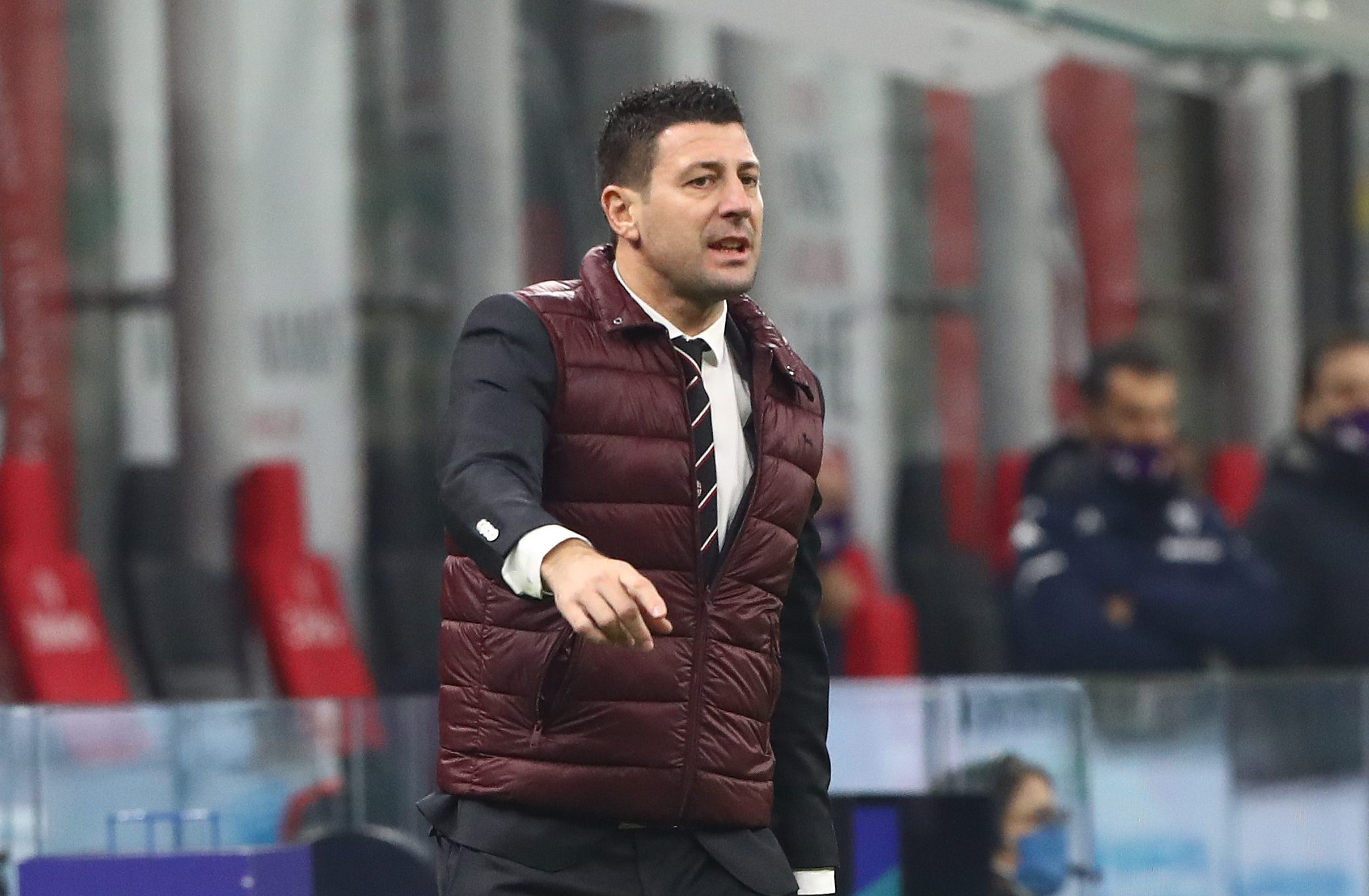MILAN, ITALY - NOVEMBER 29: Daniele Bonera, Assistant Coach of AC Milan gives their team instructions during the Serie A match between AC Milan and ACF Fiorentina at Stadio Giuseppe Meazza on November 29, 2020 in Milan, Italy. Sporting stadiums around Italy remain under strict restrictions due to the Coronavirus Pandemic as Government social distancing laws prohibit fans inside venues resulting in games being played behind closed doors. (Photo by Marco Luzzani/Getty Images)