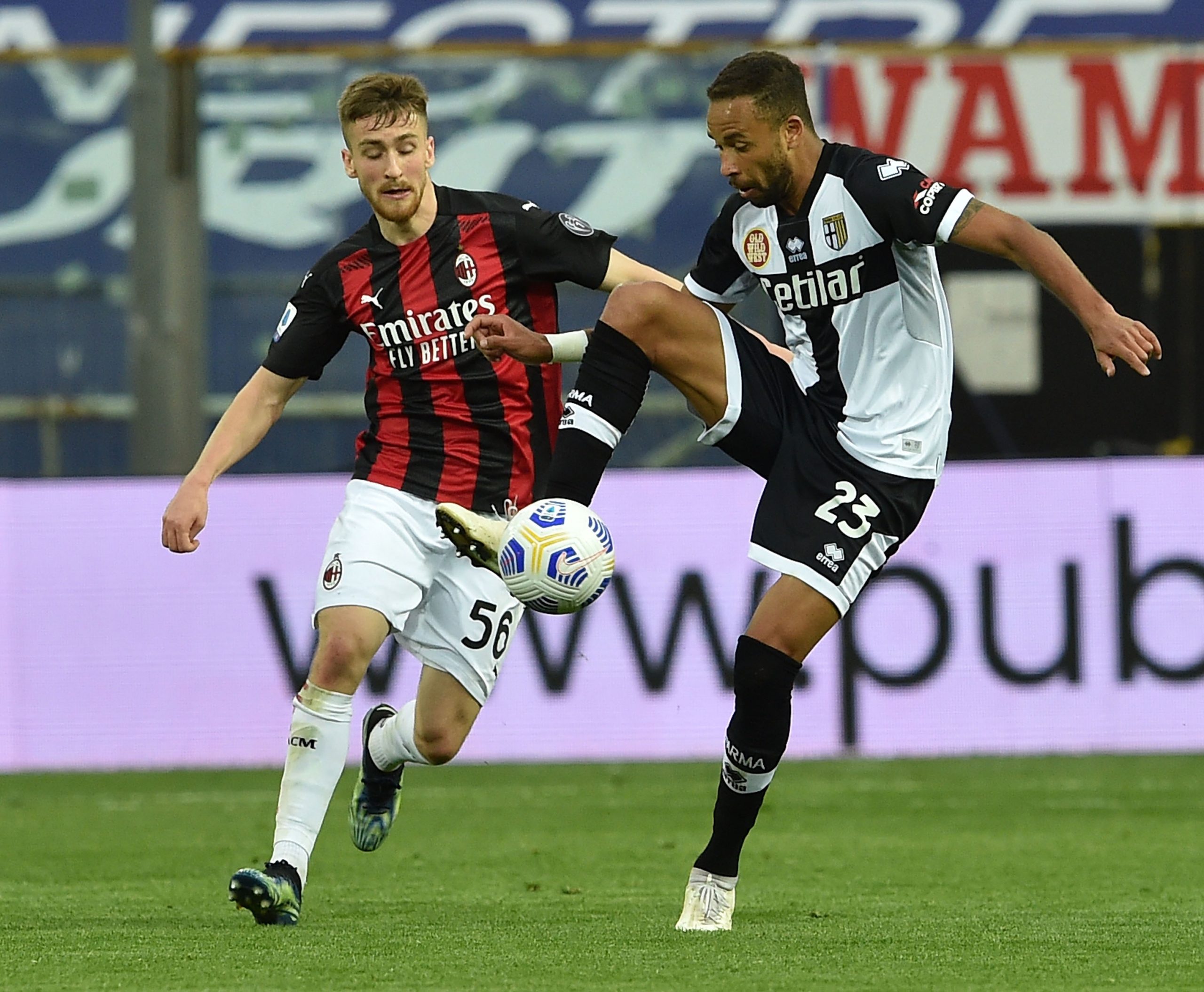 Contrasto tra Saelemaekers del Milan e Hernani del Parma