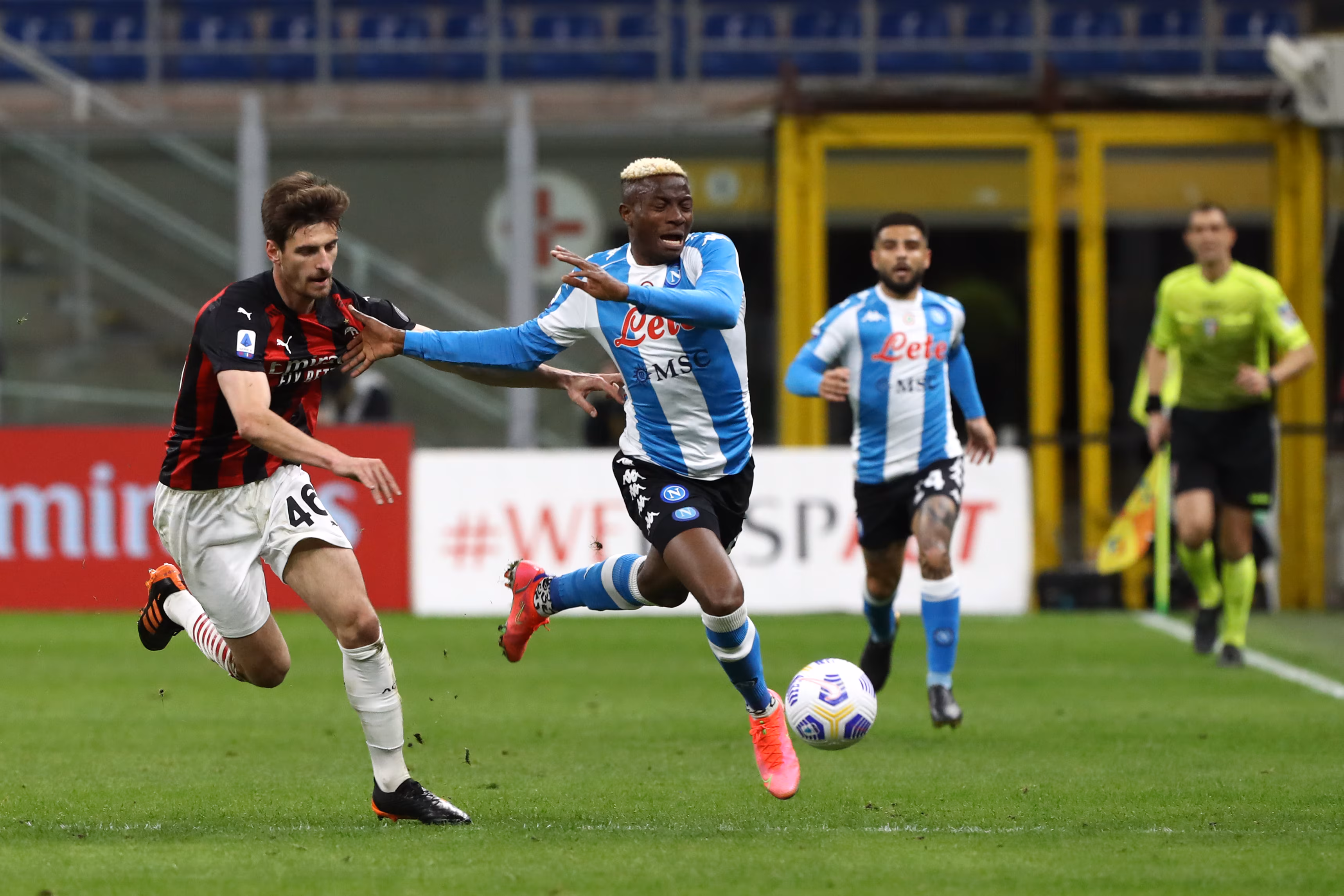 Victor Osimhen del Napoli tenta di scappare a Gabbia del Milan