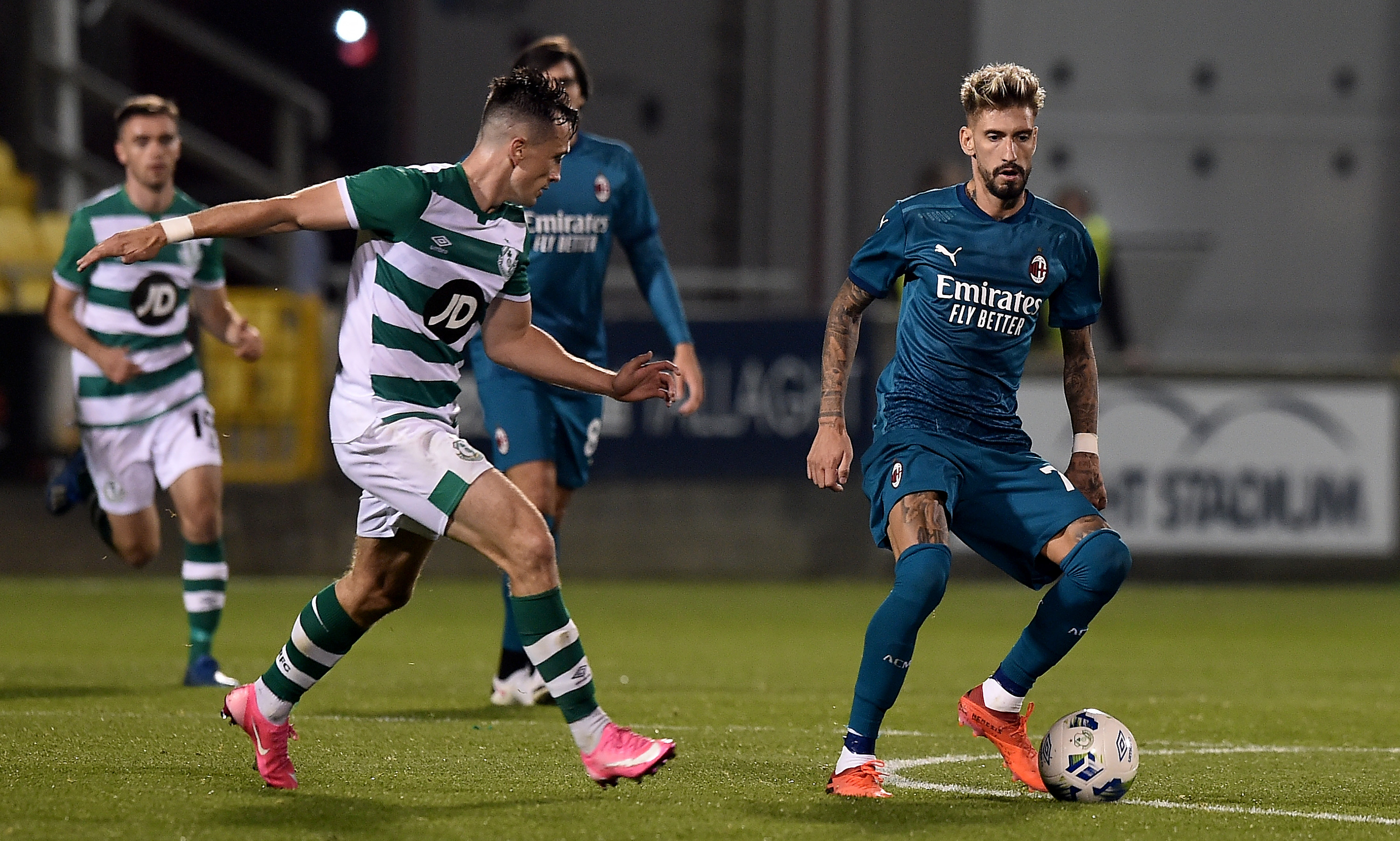 TALLAGHT, IRELAND - SEPTEMBER 17: Samu Castillejo of AC Milan runs with the ball during the UEFA Europa League second qualifying round match between Shamrock Rovers and AC Milan at Tallaght Stadium on September 17, 2020 in Tallaght, Ireland. (Photo by Charles McQuillan/Getty Images)