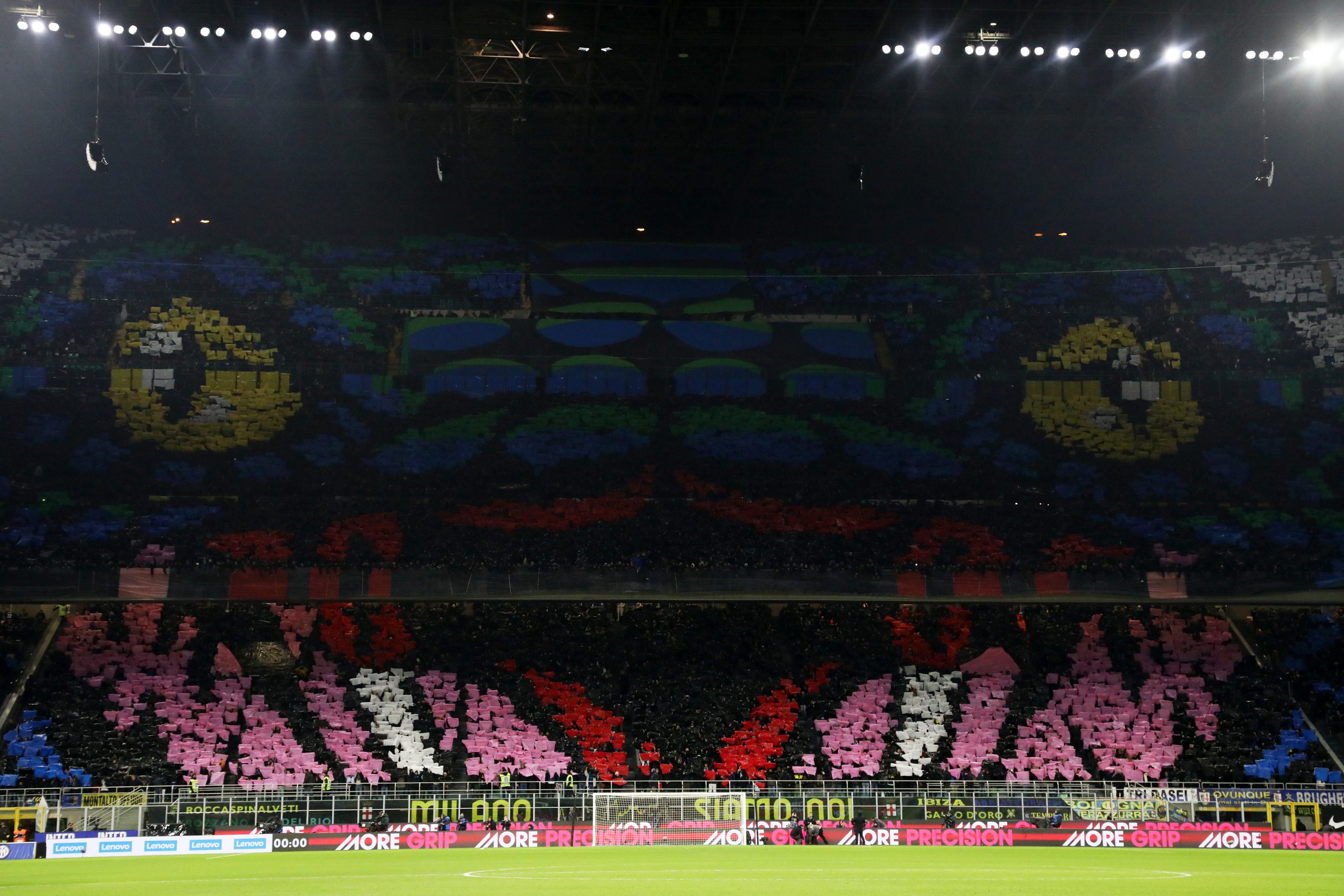 MILAN, ITALY - FEBRUARY 05: General view inside the stadium prior to the Serie A match between FC Internazionale and AC MIlan at Stadio Giuseppe Meazza on February 05, 2023 in Milan, Italy. (Photo by Marco Luzzani/Getty Images)