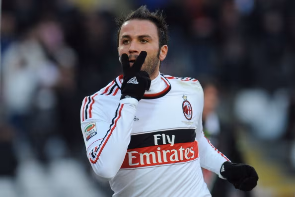 TURIN, ITALY - DECEMBER 09: Giampaolo Pazzini of AC Milan celebrates after scoring their third goal during the Serie A match between Torino FC and AC Milan at Stadio Olimpico di Torino on December 9, 2012 in Turin, Italy. (Photo by Valerio Pennicino/Getty Images)