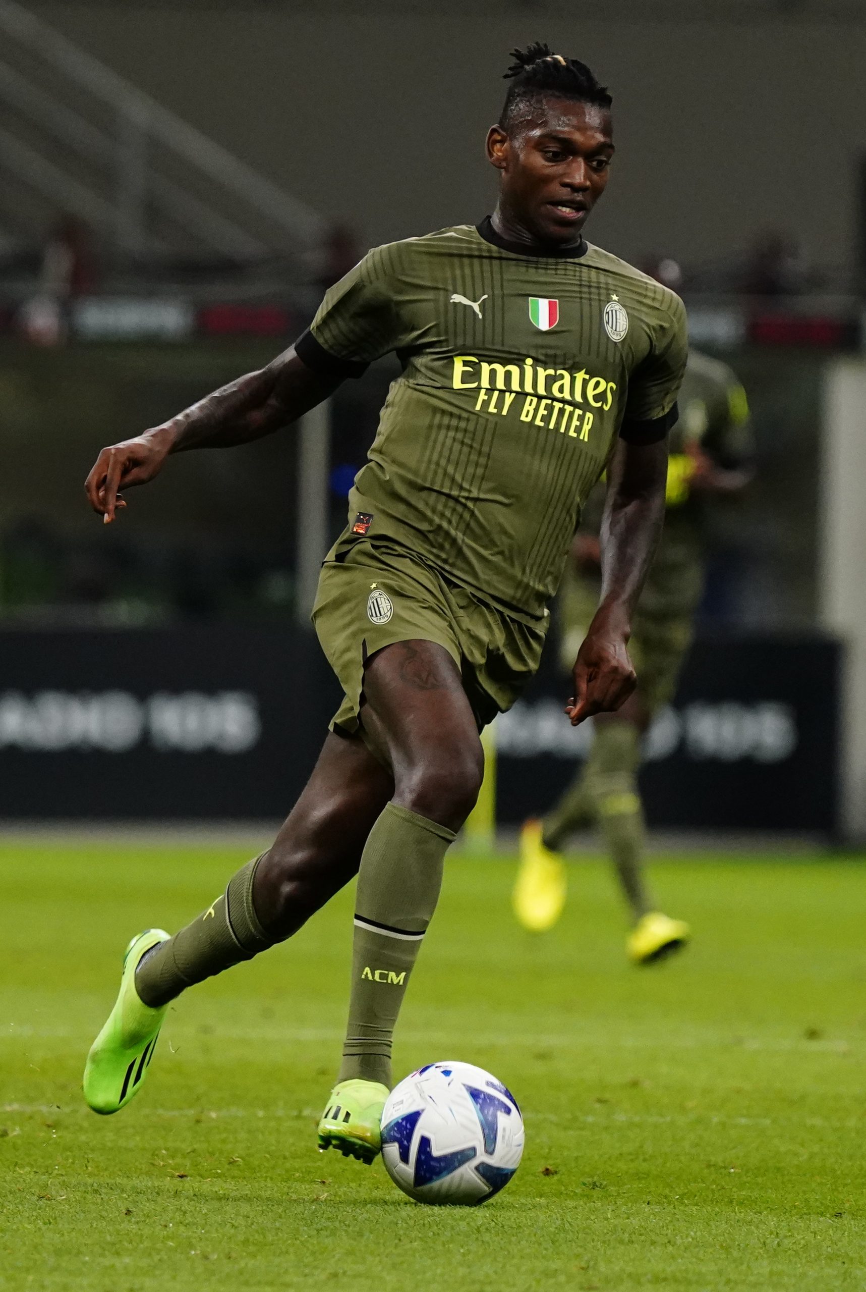 MILAN, ITALY - AUGUST 27: Rafael Leão of AC Milan controls the ball during the Serie A match between AC Milan and Bologna FC at Stadio Giuseppe Meazza on August 27, 2022 in Milan, Italy. (Photo by Pier Marco Tacca/AC Milan via Getty Images)