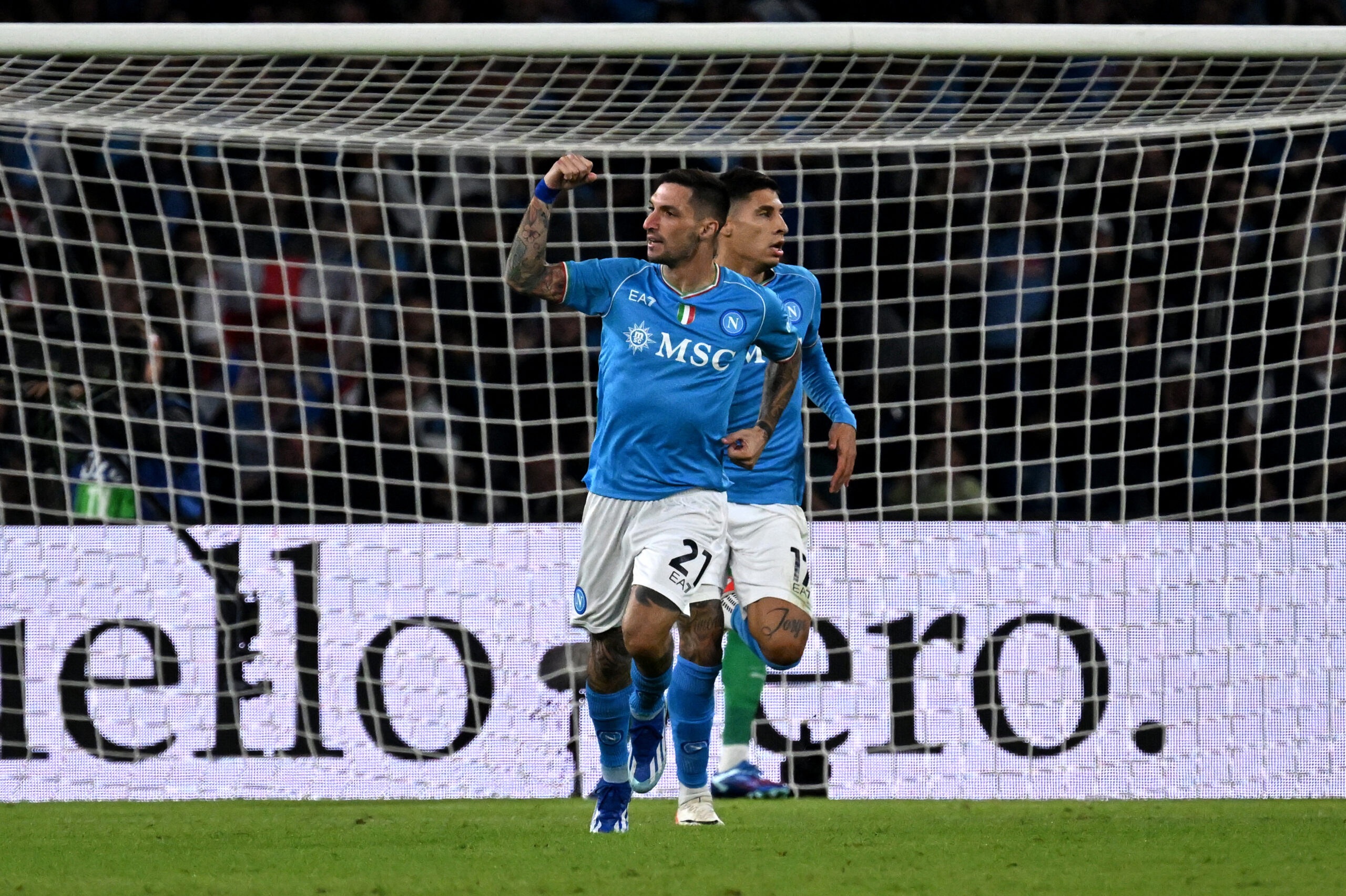 NAPLES, ITALY - OCTOBER 29: Matteo Politano of SSC Napoli celebrates after scoring the team's first goal during the Serie A TIM match between SSC Napoli and AC Milan at Stadio Diego Armando Maradona on October 29, 2023 in Naples, Italy. (Photo by Francesco Pecoraro/Getty Images)